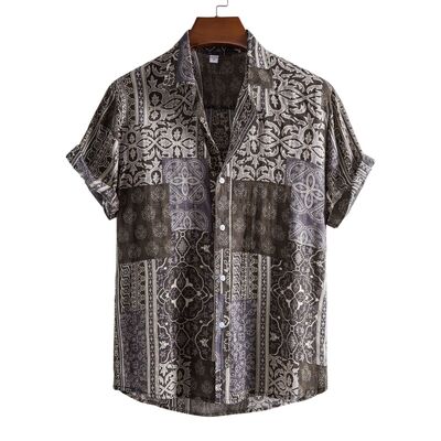 Men's Plus Size Ethnic Print Short Sleeve Button-Up Shirt
