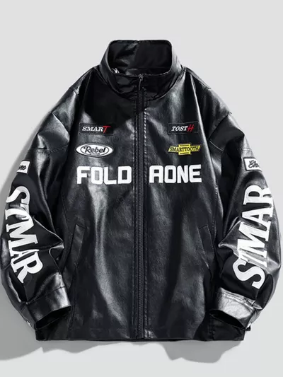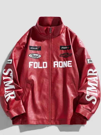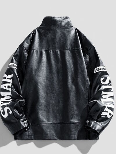 Men's Plus Size Faux Leather Zip Up Jacket