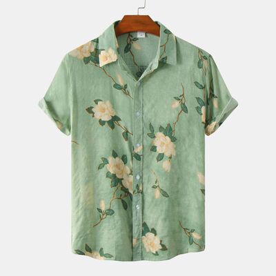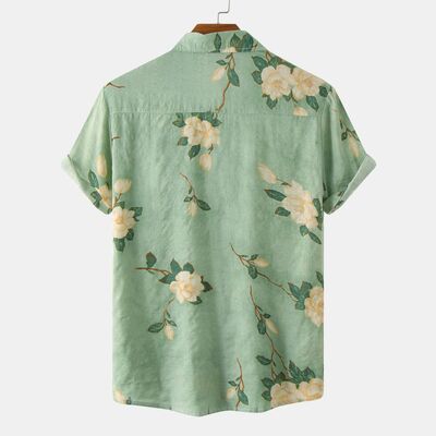 Men's Plus Size Floral Print Short Sleeve Button Down Shirt
