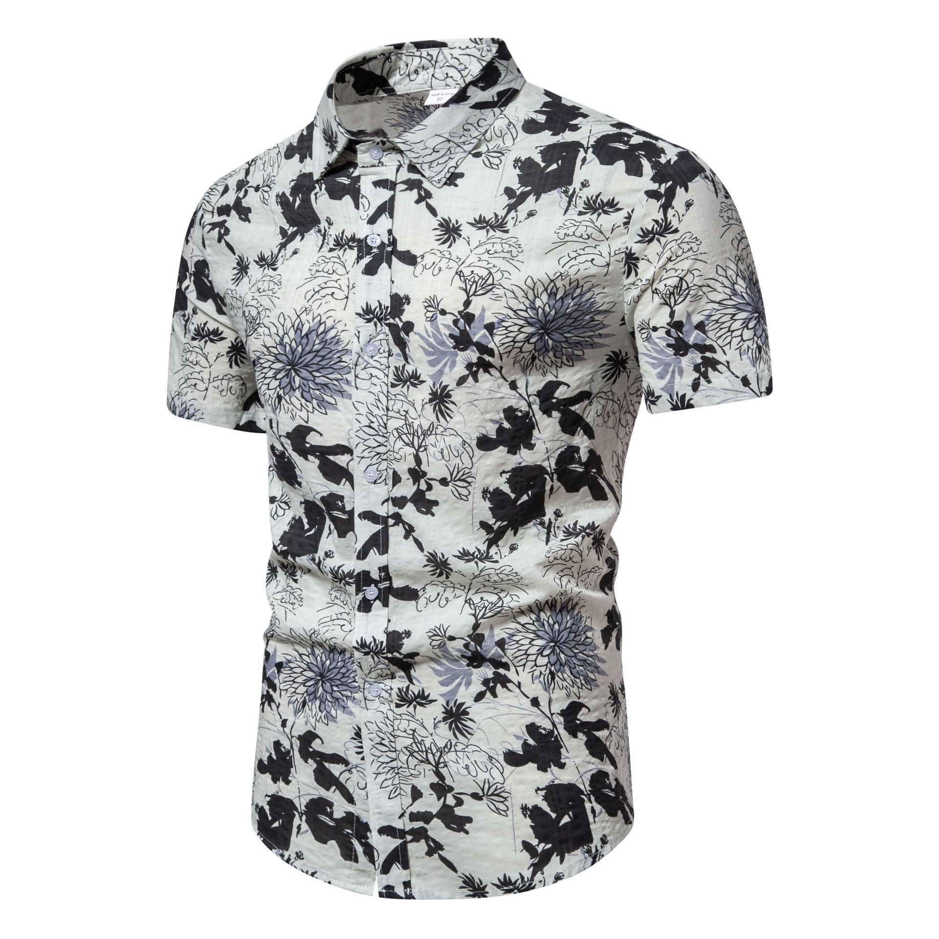 Men's Plus Size Floral Print Short Sleeve Button Down Shirt