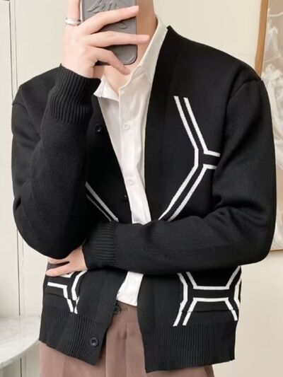 Men's Plus Size Geometric Pattern Knit Cardigan