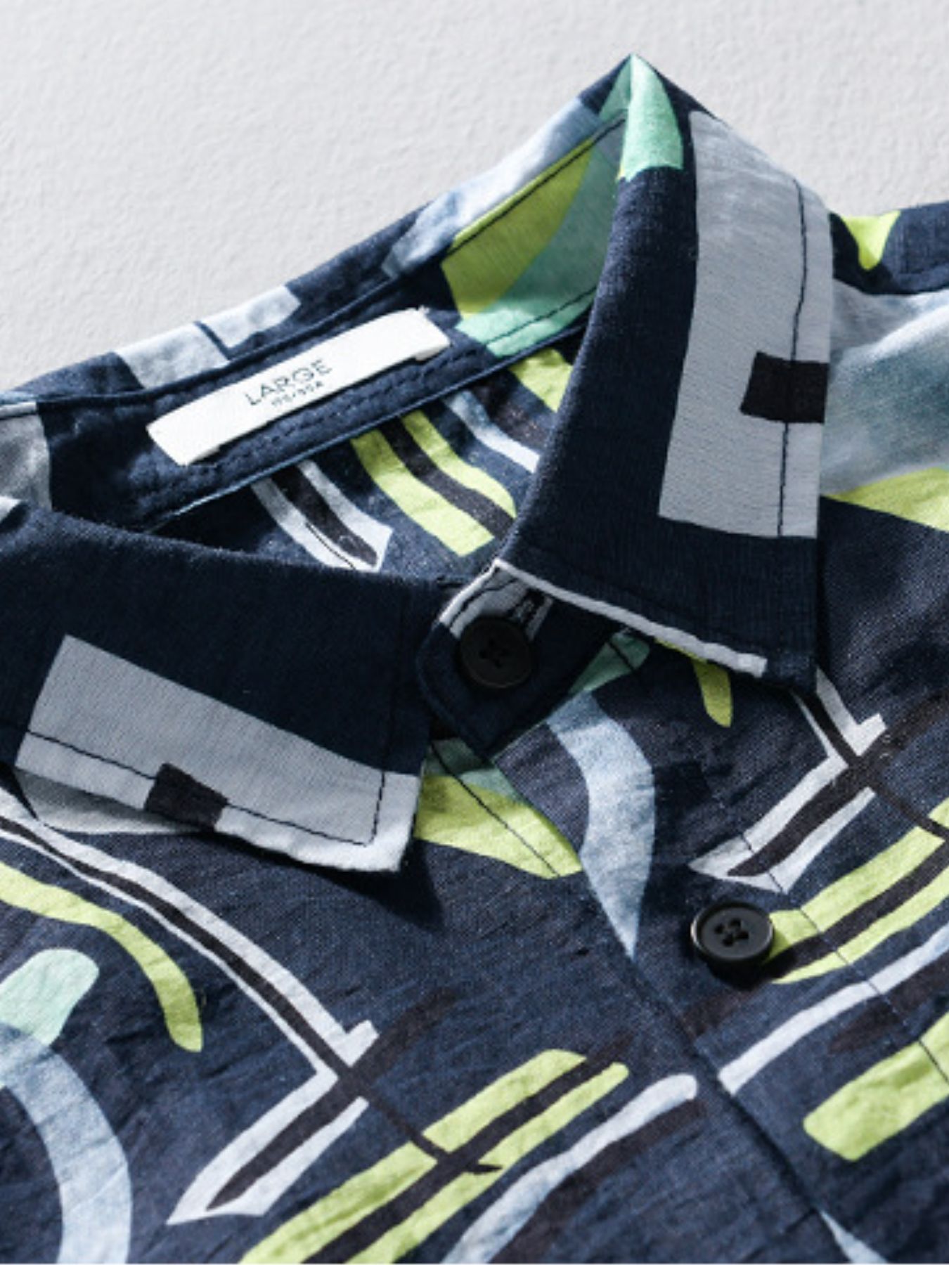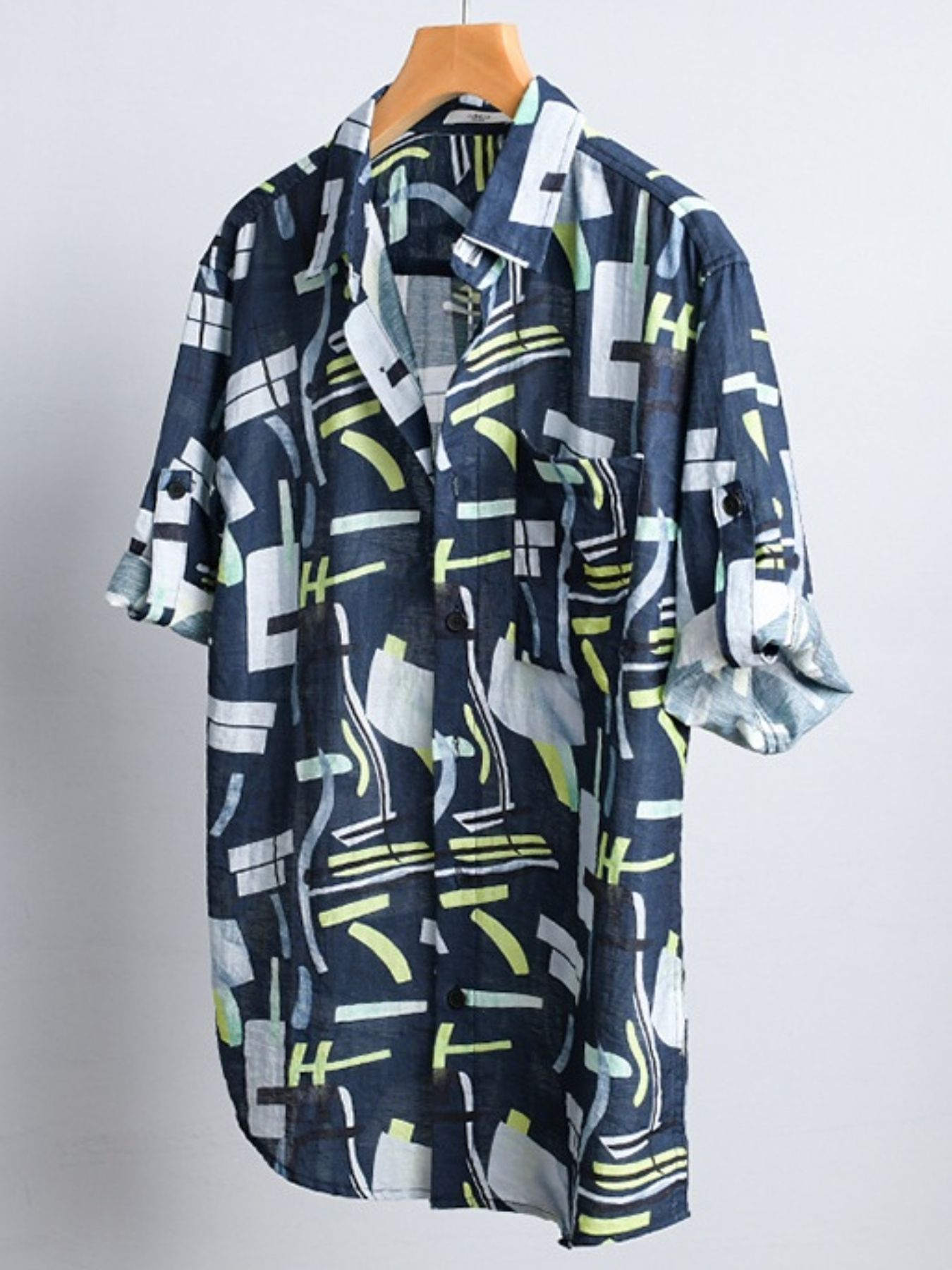 Men's Plus Size Geometric Print Casual Short Sleeve Shirt