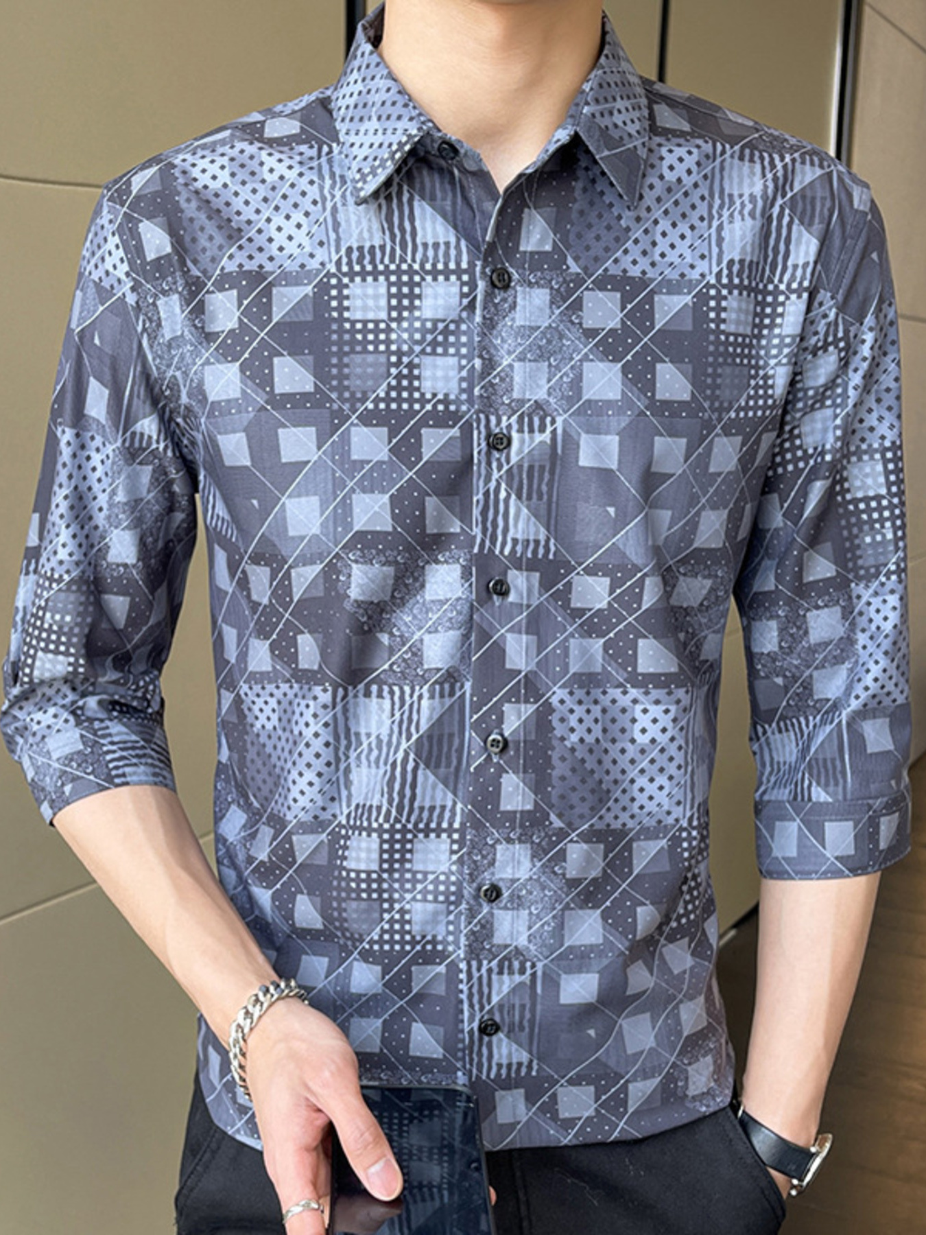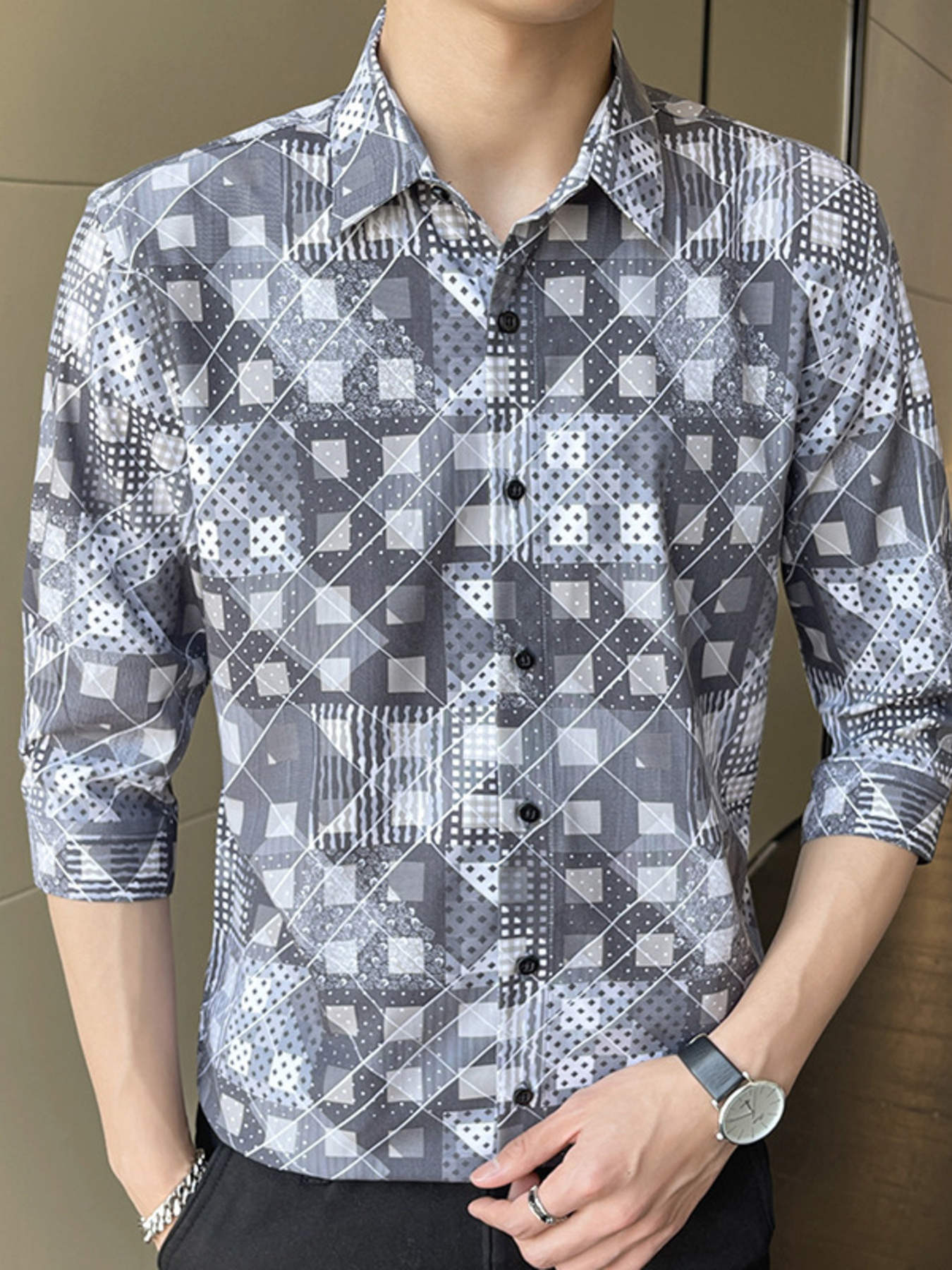 Men's Plus Size Geometric Print Slim Fit Casual Shirt