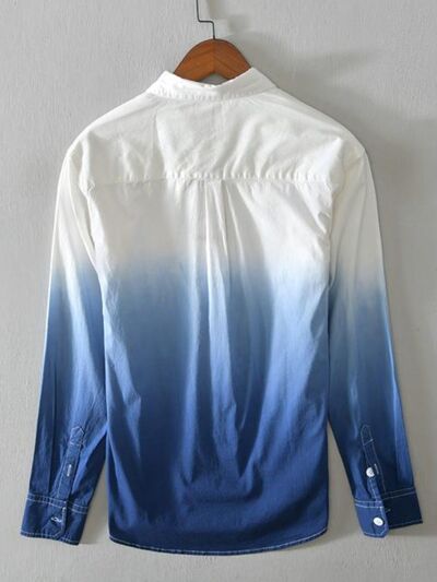 Men's Plus Size Gradient Button Up Long Sleeve Shirt