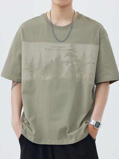 Men's Plus Size Graphic Round Neck Half Sleeve T-Shirt