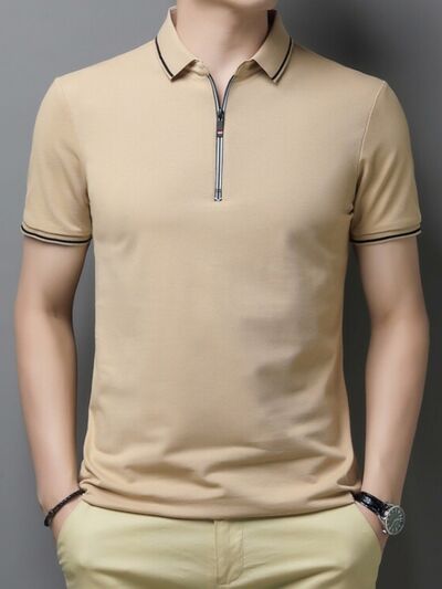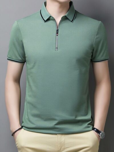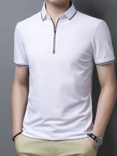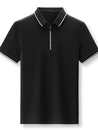 Men's Plus Size Half-Zip Contrast Trim Polo Shirt