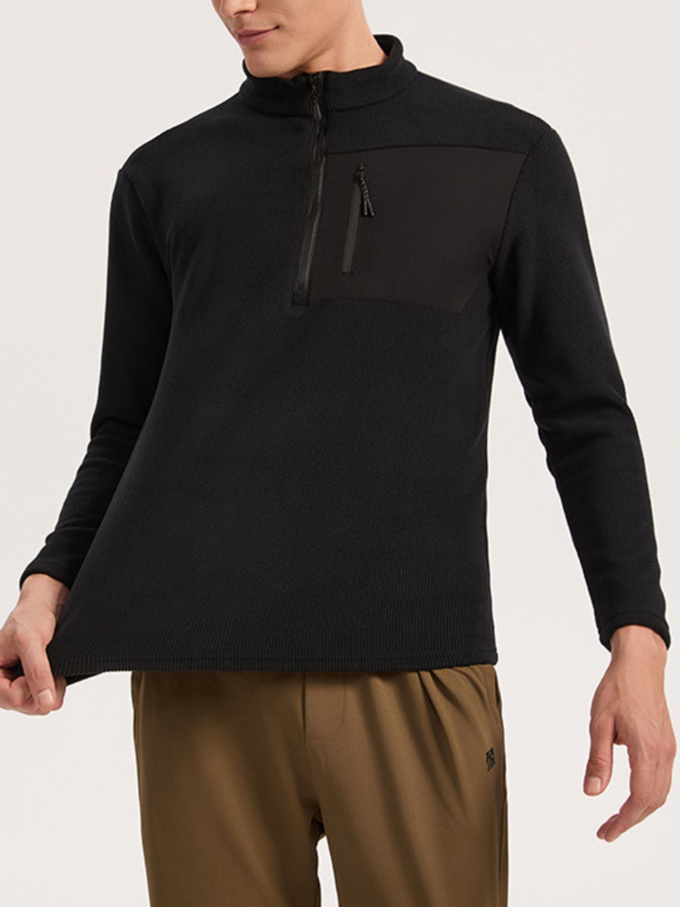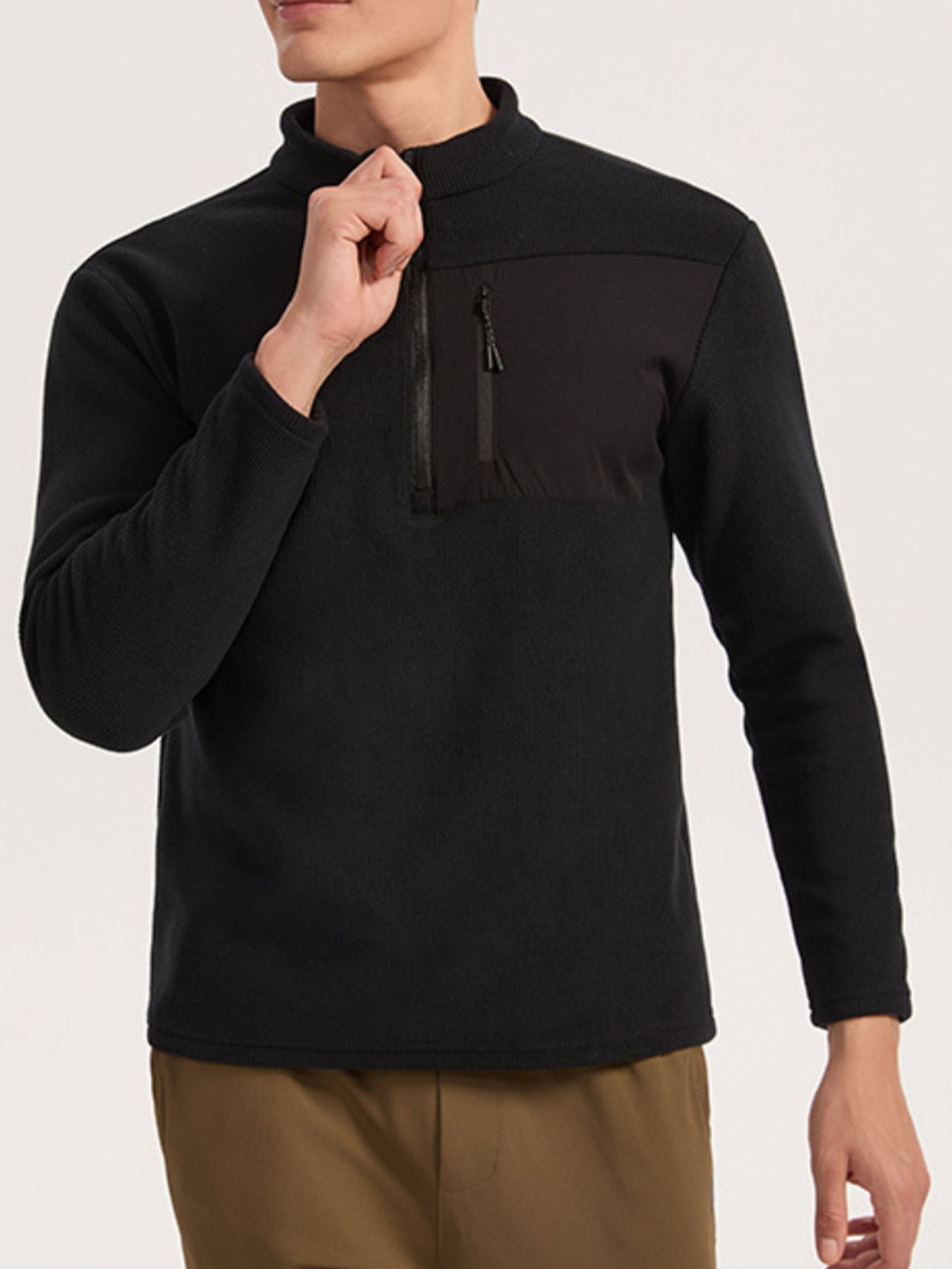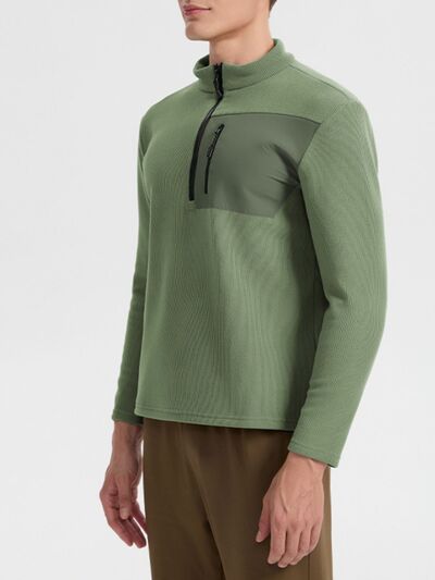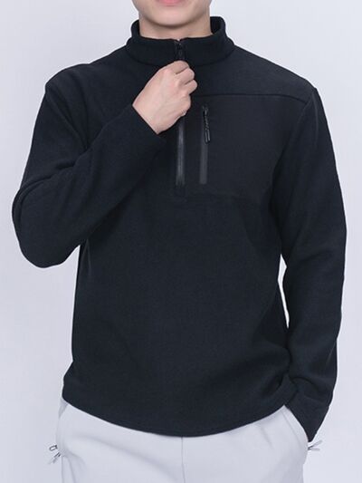 Men's Plus Size Half-Zip Fleece Sweatshirt with Chest Pocket