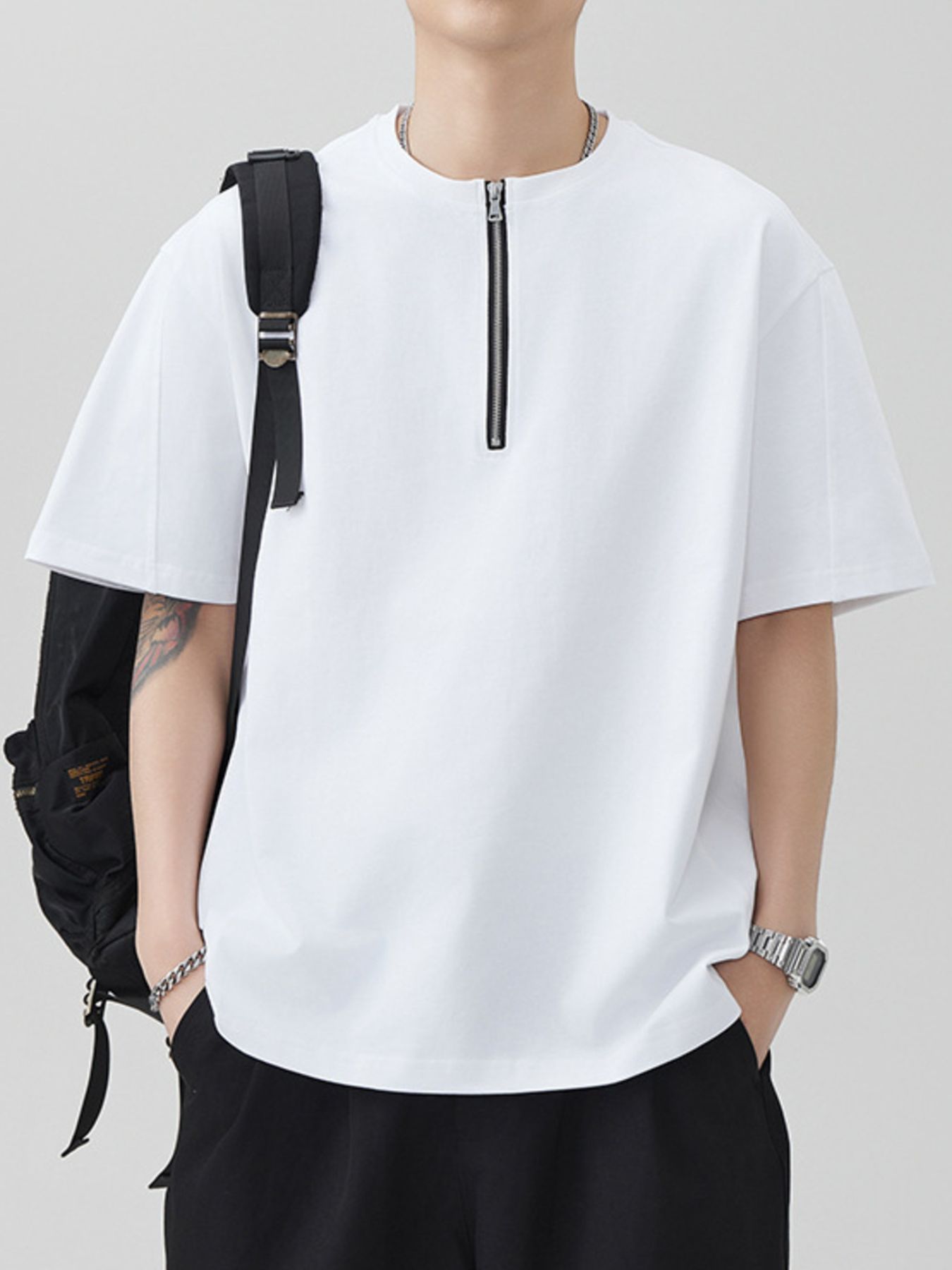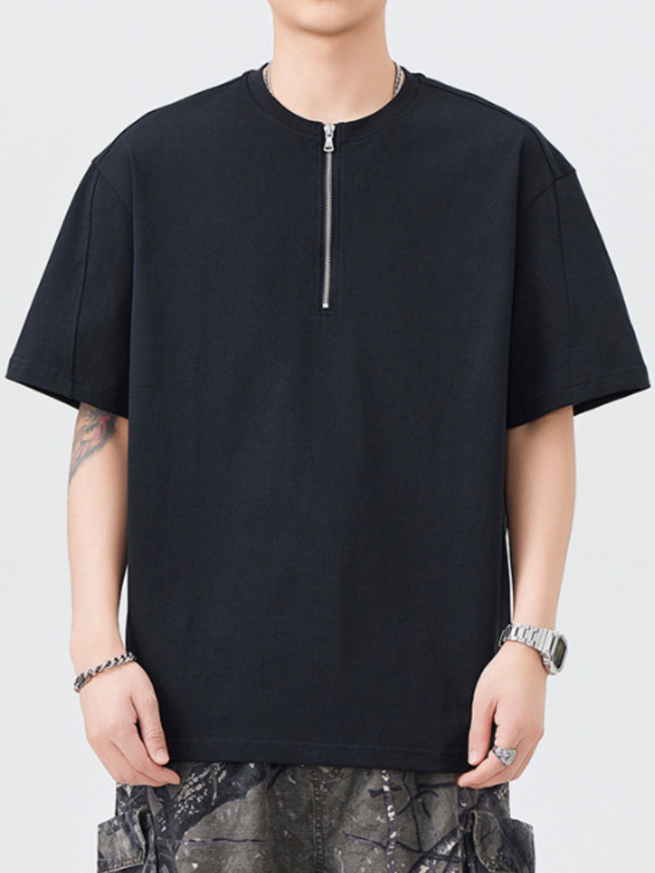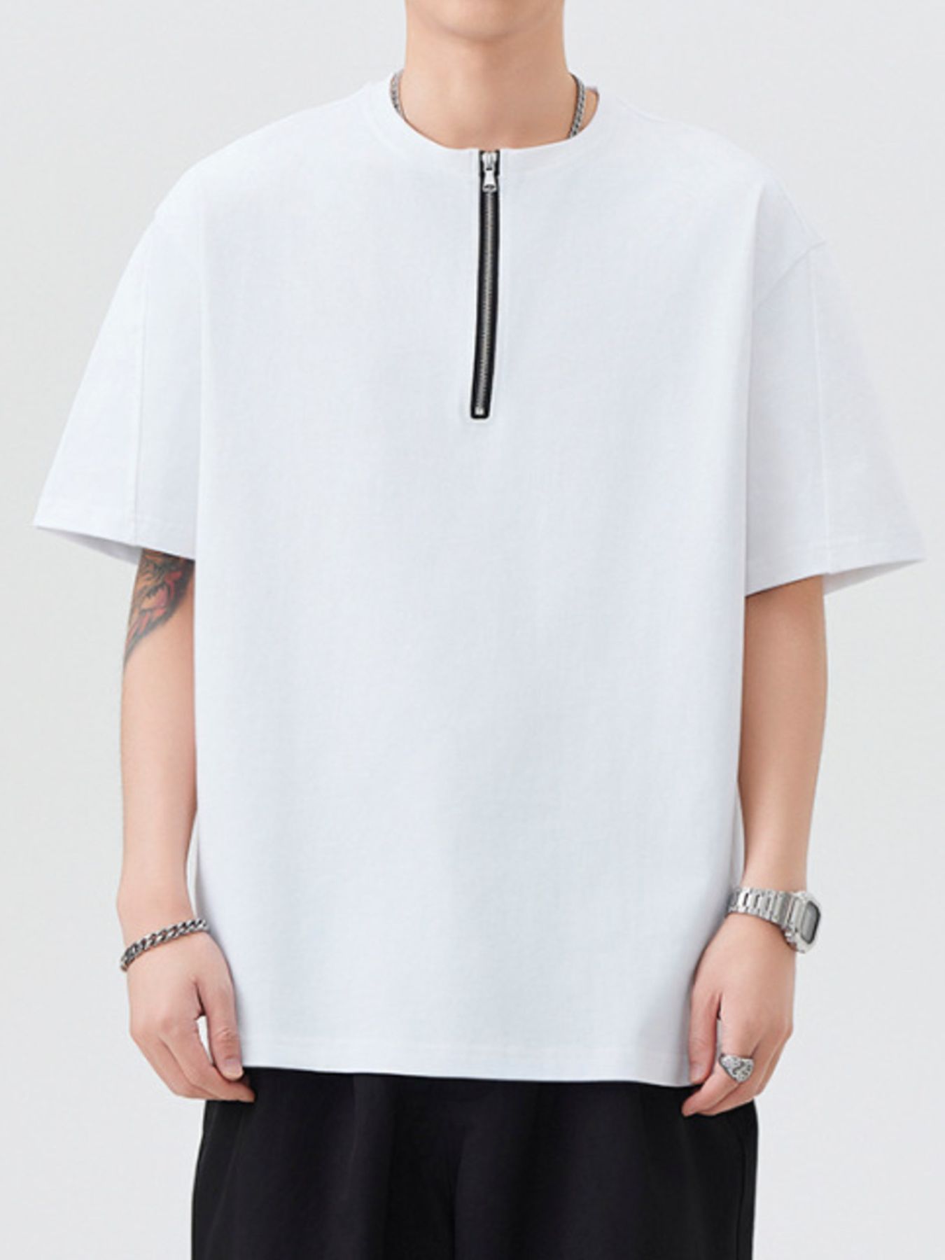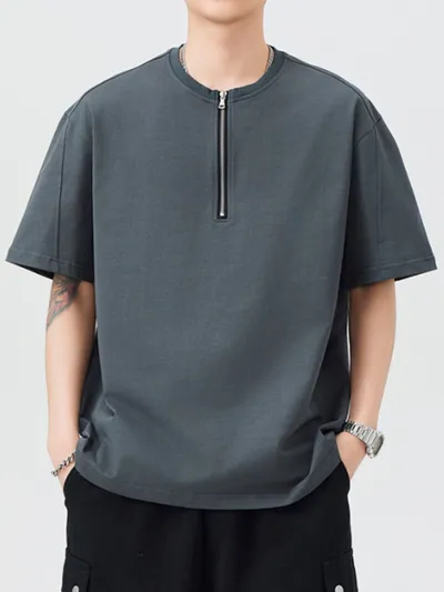 Men's Plus Size Half-Zip Oversized T-Shirt