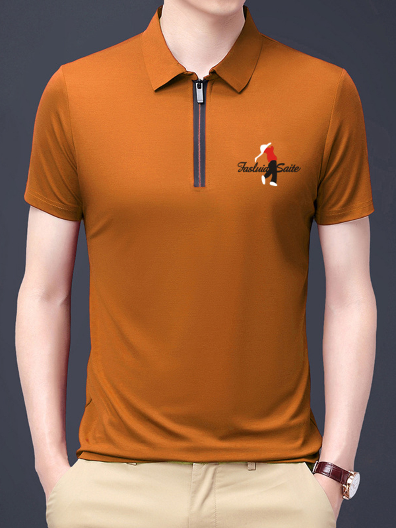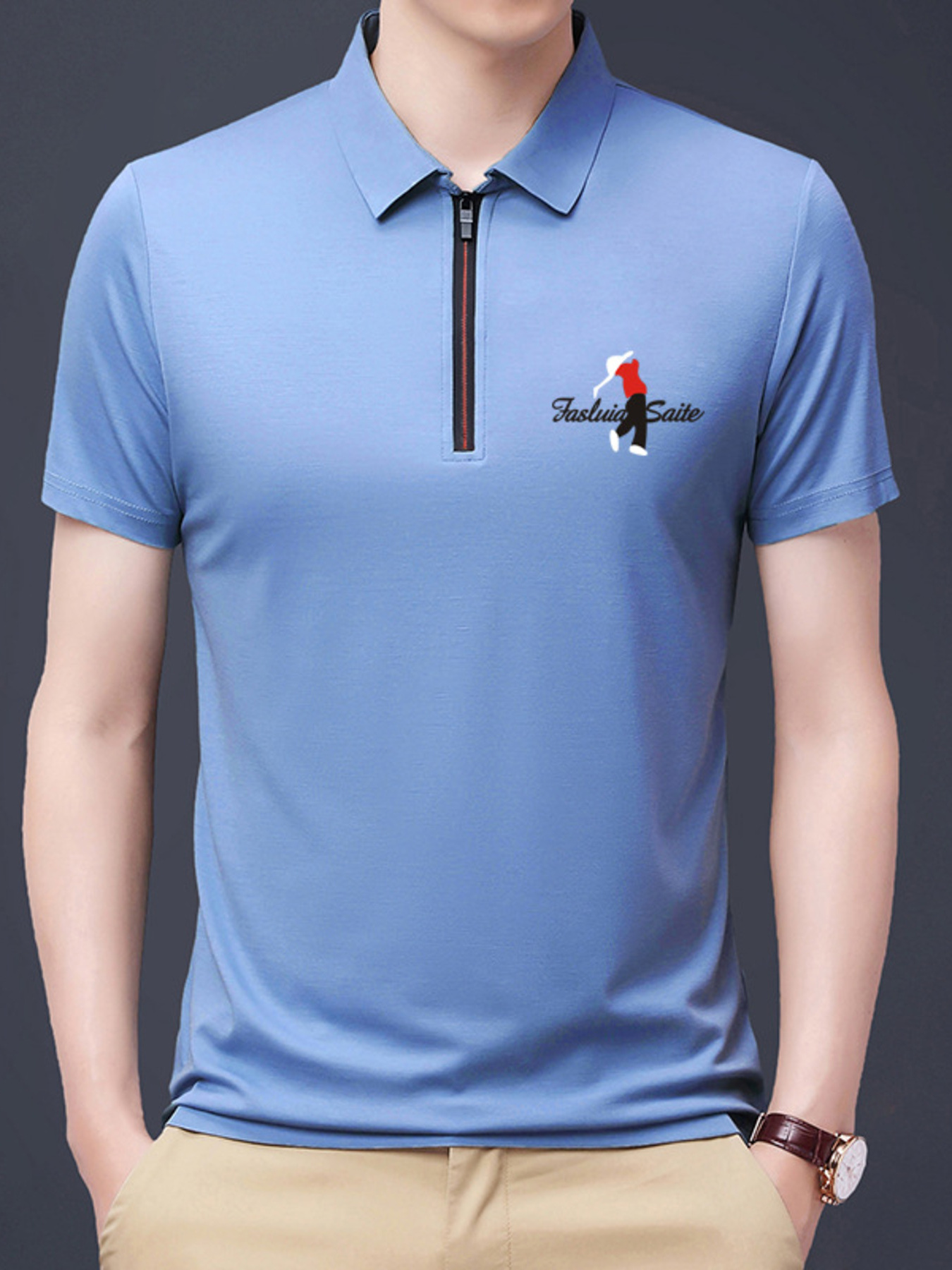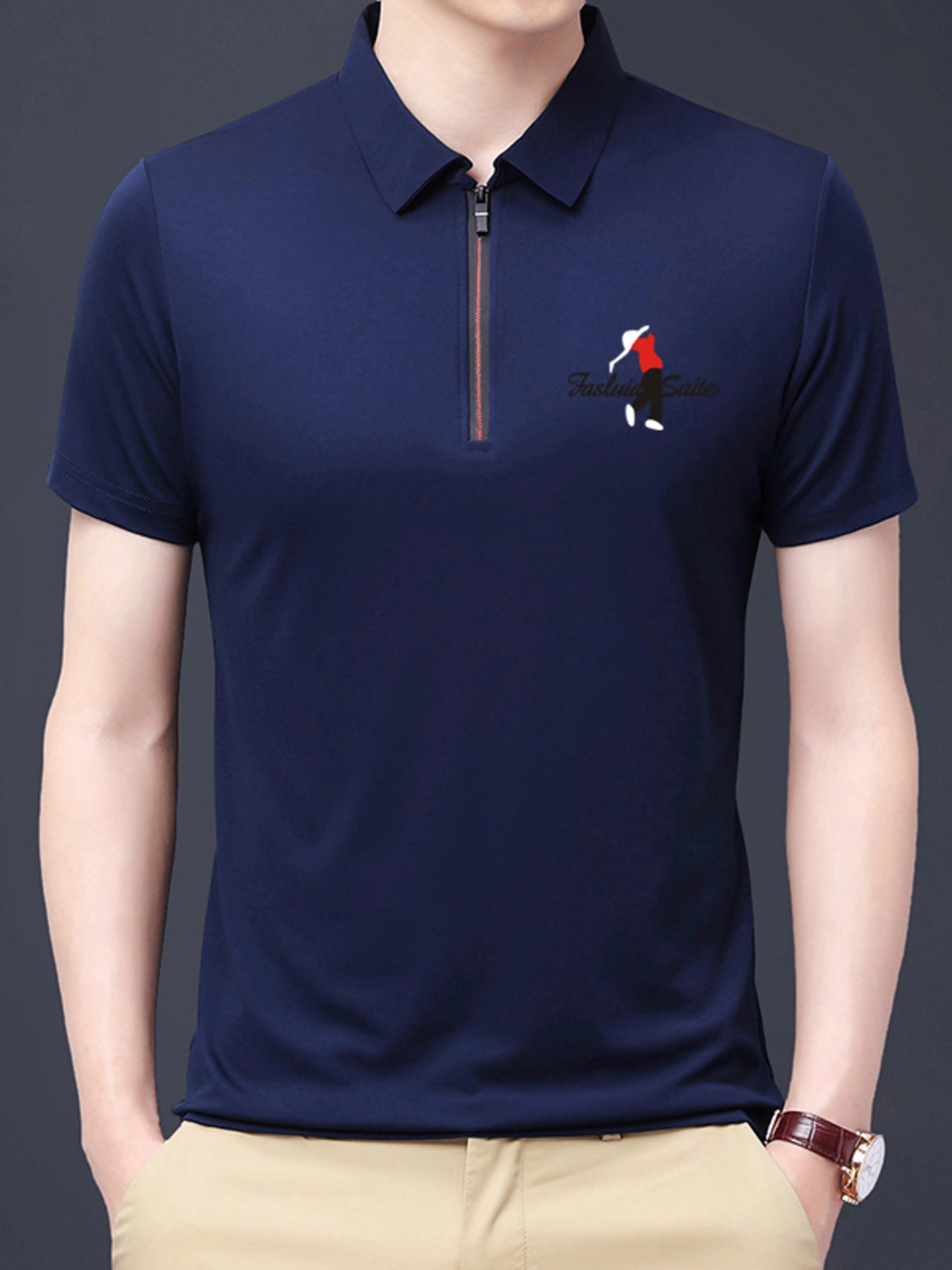 Men's Plus Size Half-Zip Short Sleeve Polo
