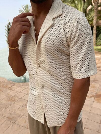 Men's Plus Size Herringbone Eyelet Button Down Knit Shirt