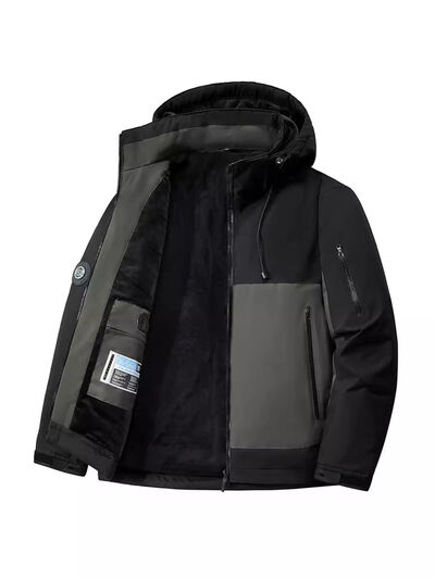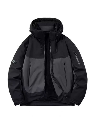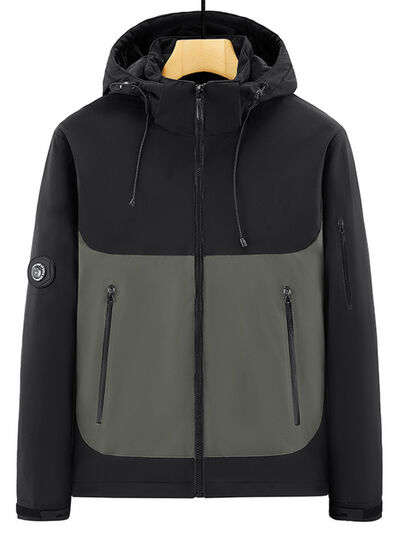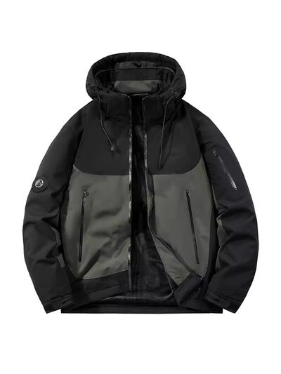 Men's Plus Size Hooded Color Block Windproof Jacket