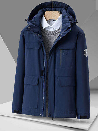 Men's Plus Size Hooded Zip Up Winter Jacket