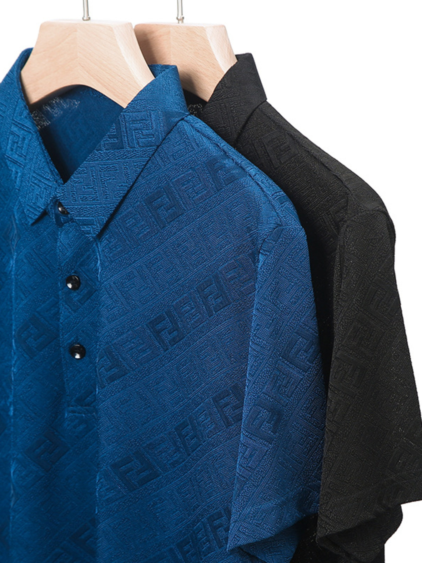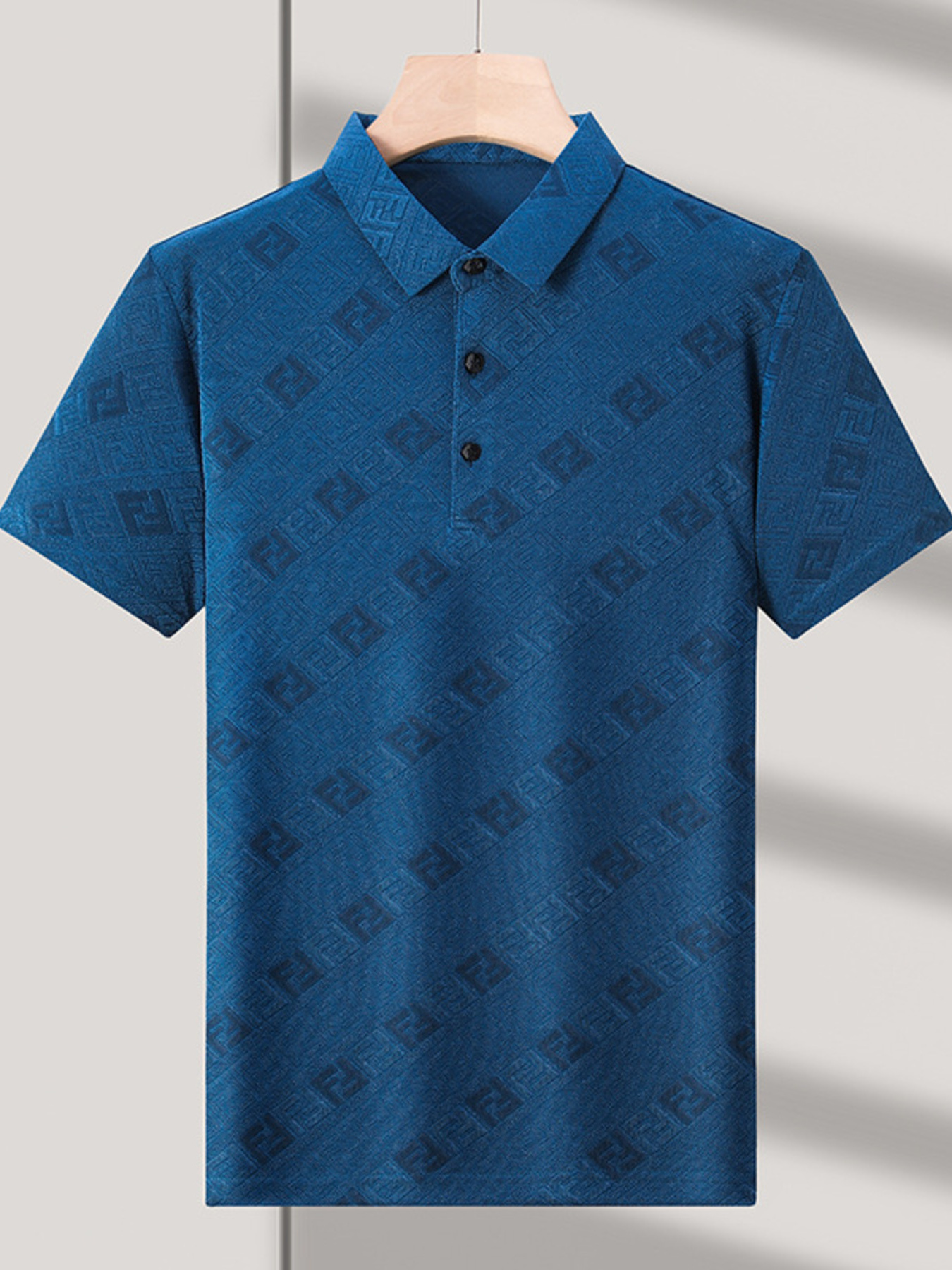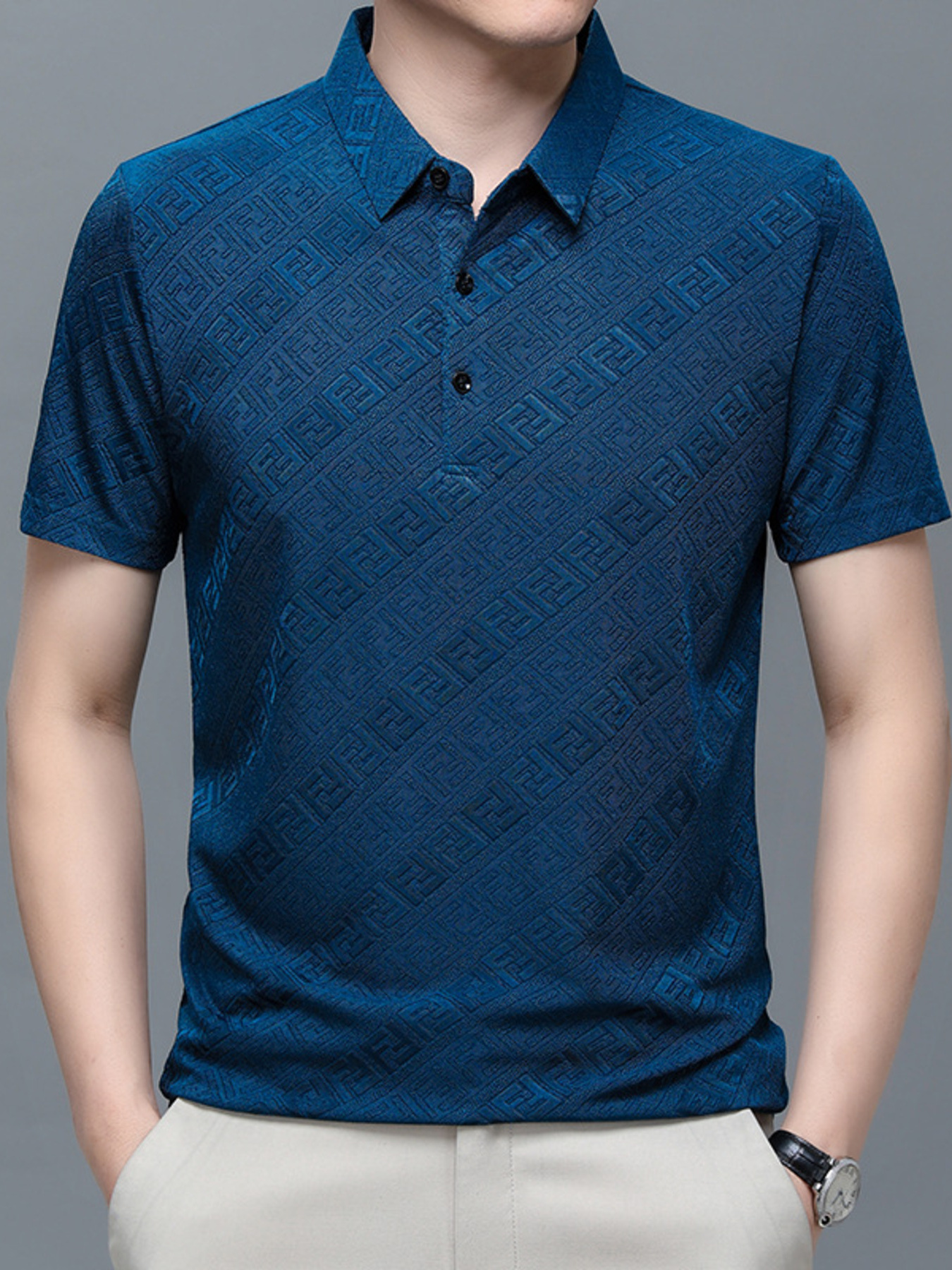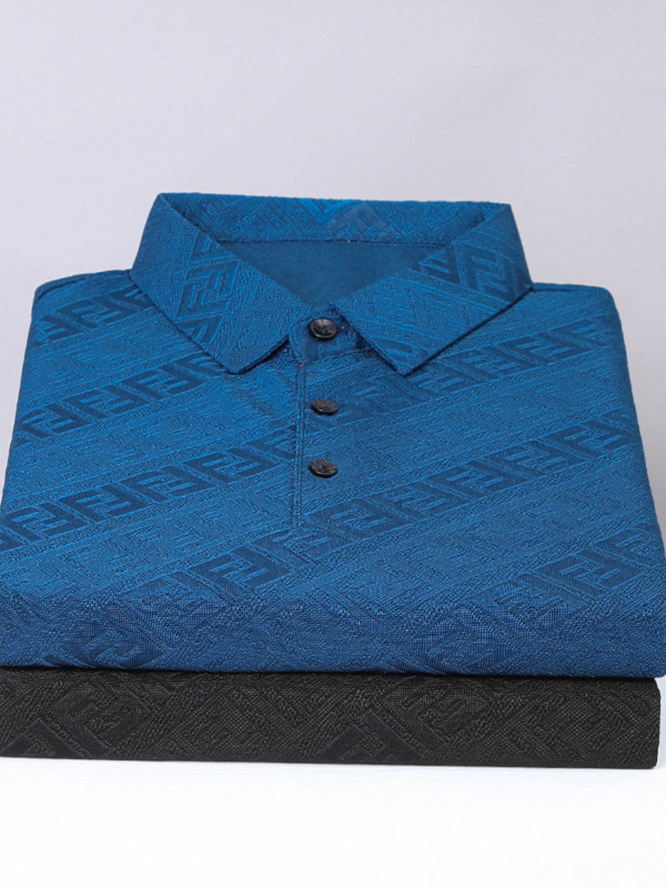 Men's Plus Size Jacquard Pattern Short Sleeve Polo