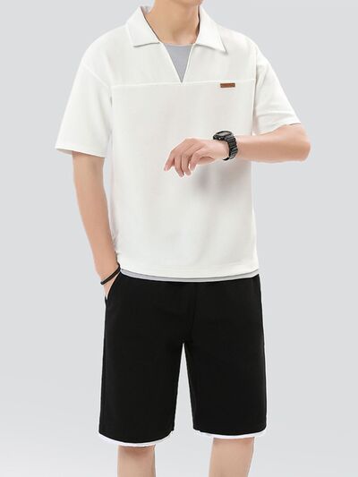 Men's Plus Size Johnny Collar Top and Shorts Set
