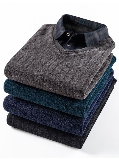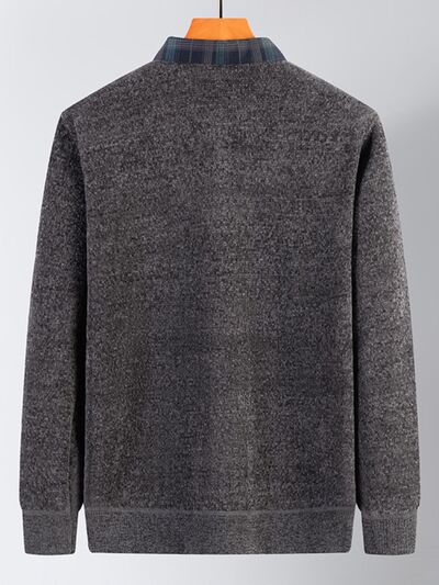 Men's Plus Size Layered Look Plaid Collar Sweater