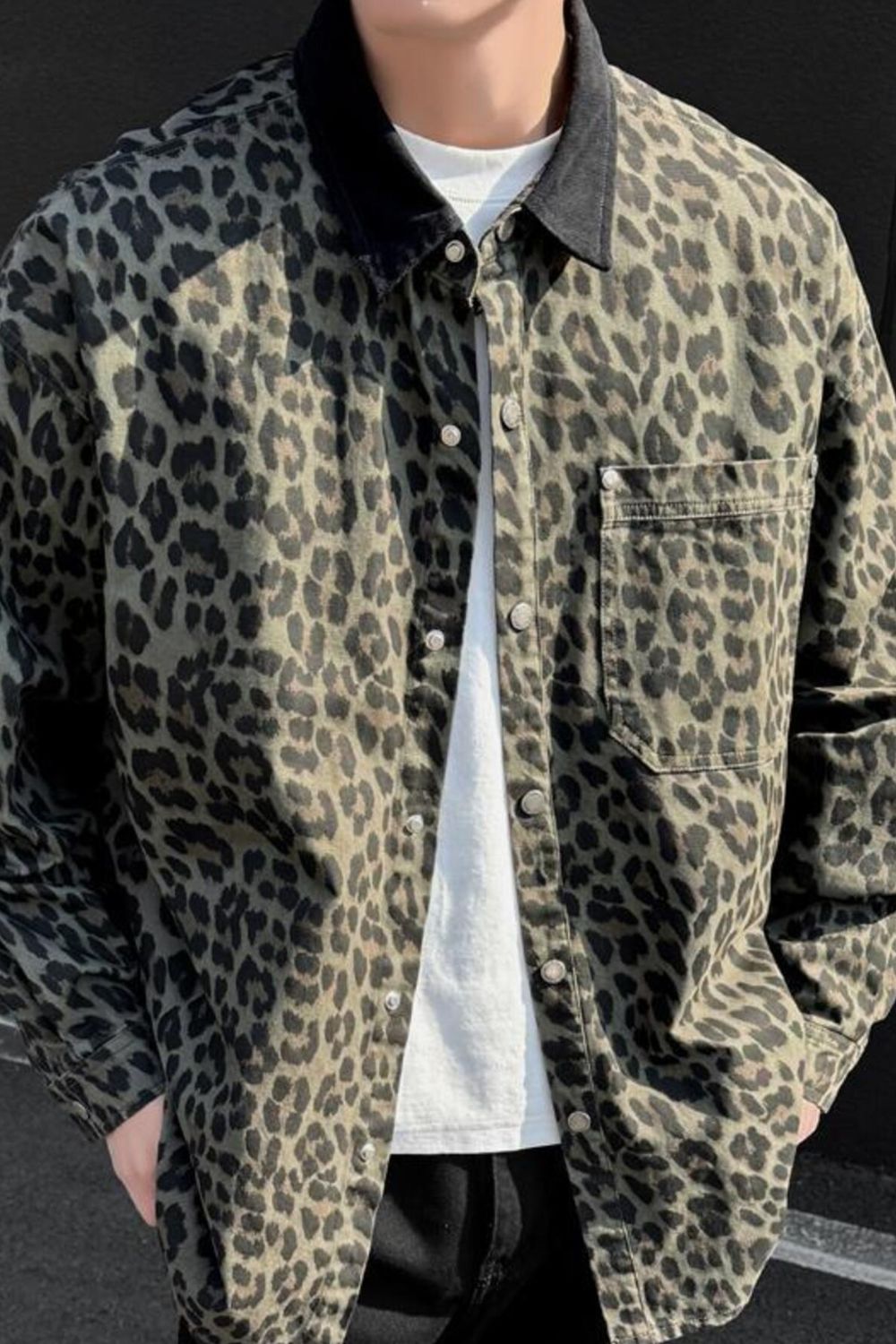 Men's Plus Size Leopard Print Snap Down Shirt