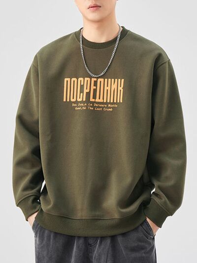Men's Plus Size Letter Graphic Crew Neck Sweatshirt