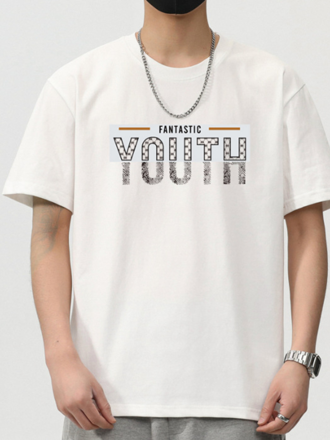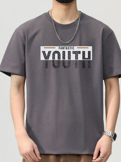 Men's Plus Size Letter Graphic Round Neck Short Sleeve T-Shirt