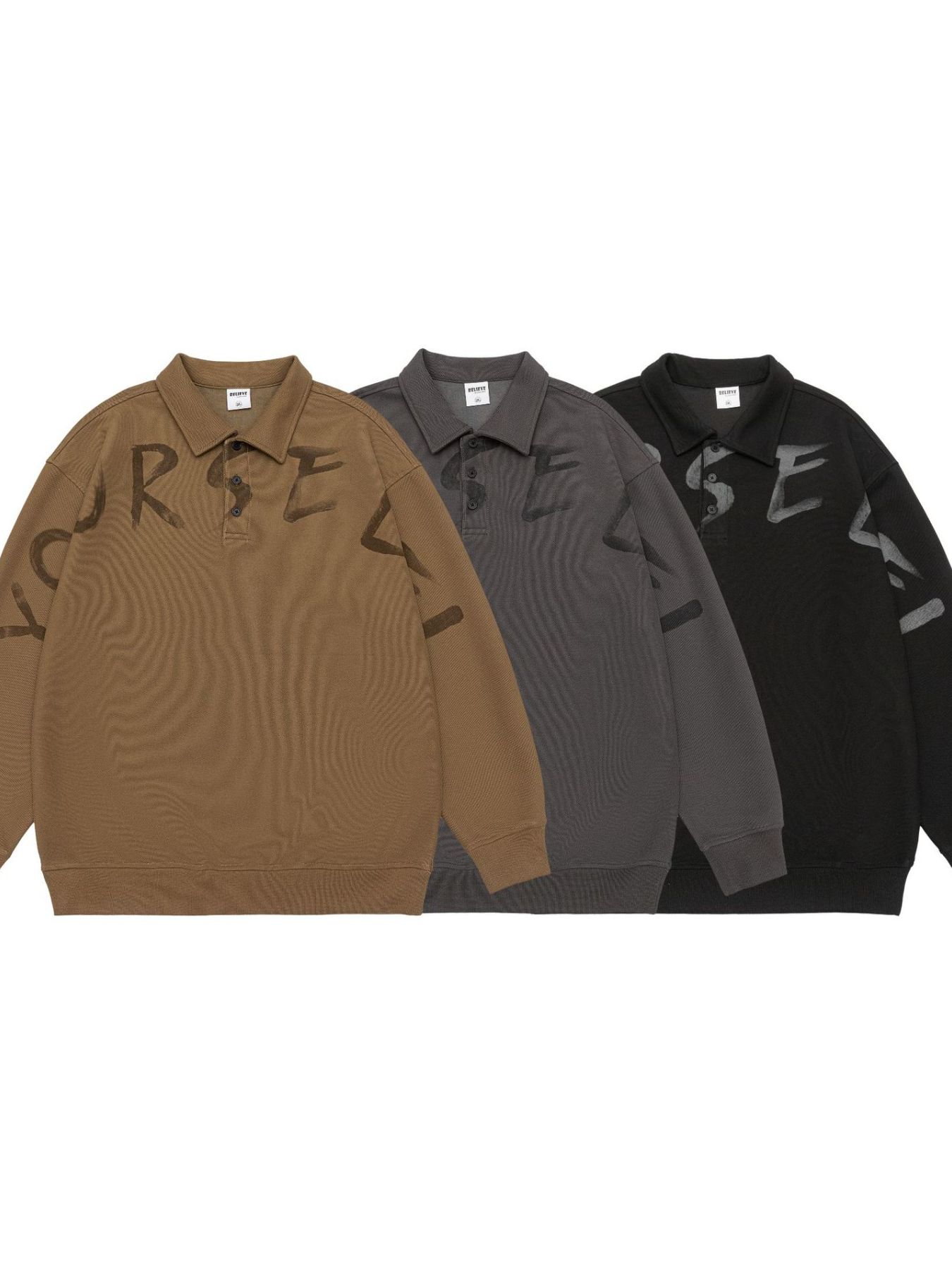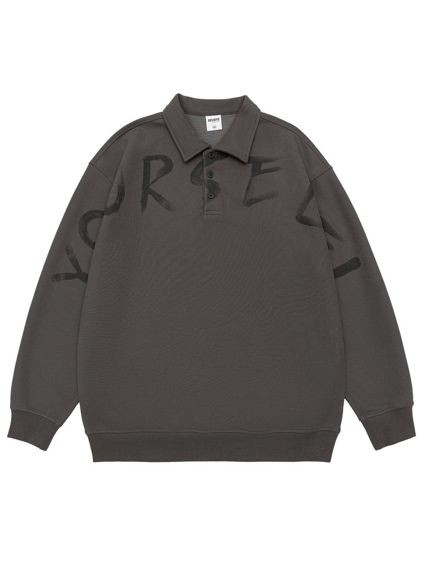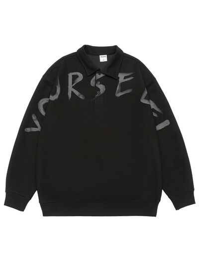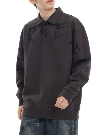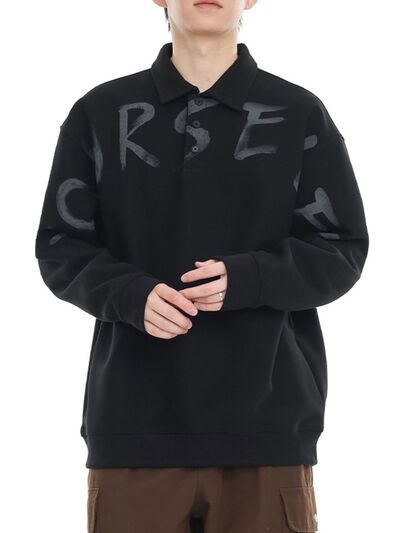 Men's Plus Size Letter Long Sleeve Polo Sweatshirt