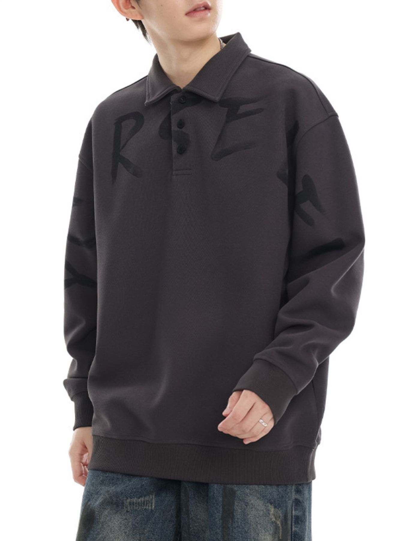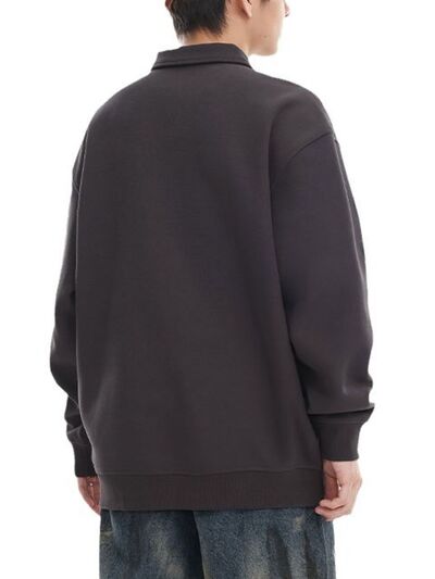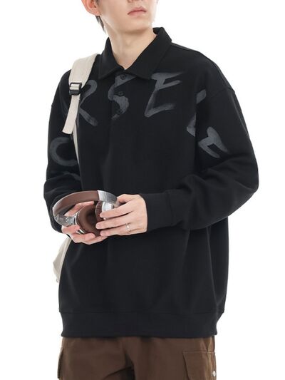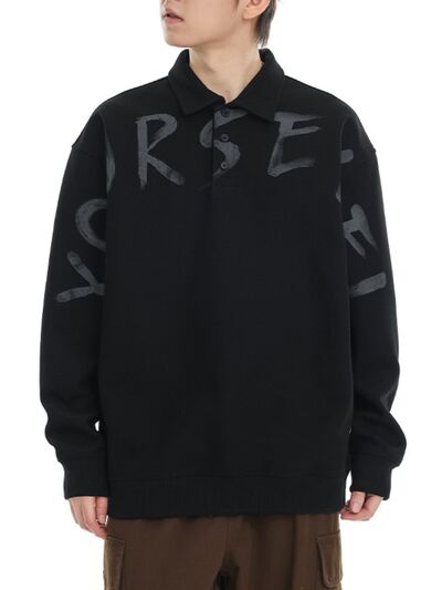 Men's Plus Size Letter Print Polo Collar Sweatshirt