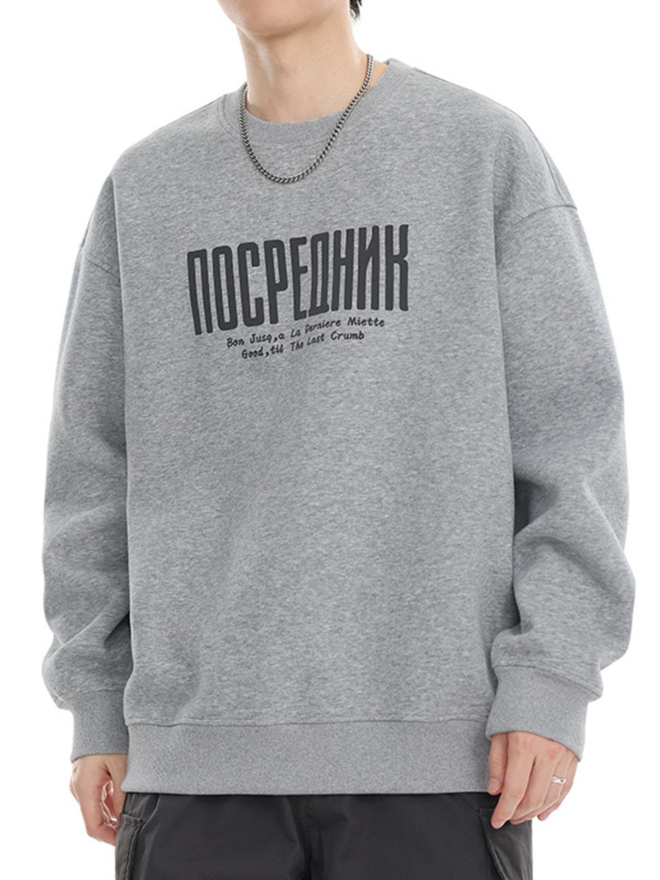 Men's Plus Size Letter Round Neck Dropped Shoulder Sweatshirt