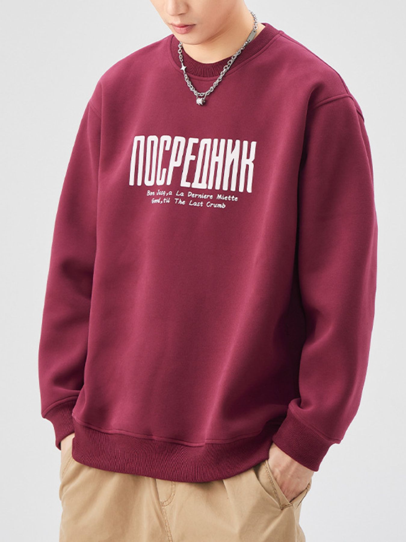Men's Plus Size Letter Round Neck Long Sleeve Sweatshirt