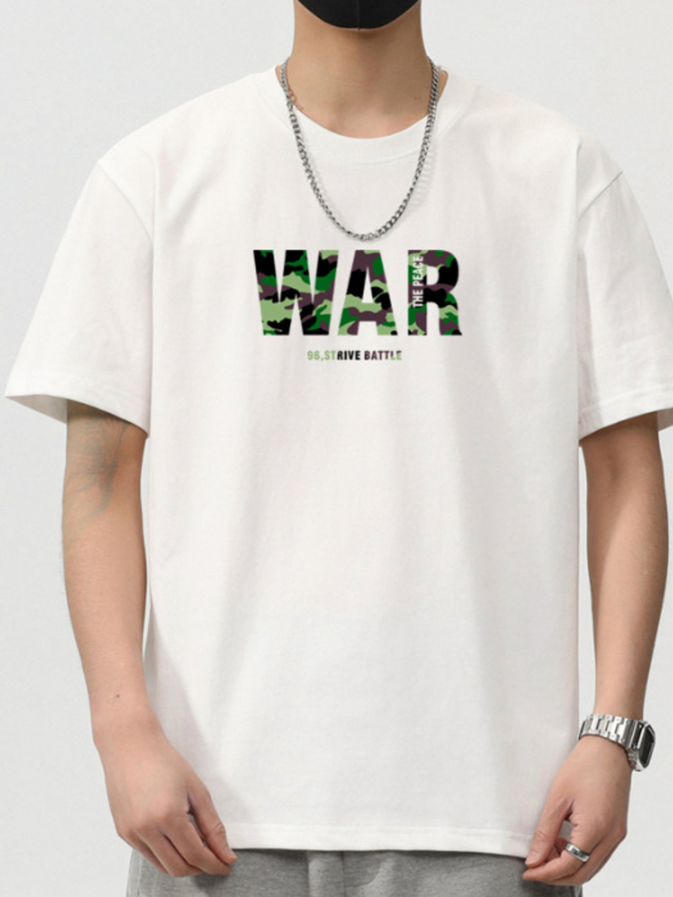 Men's Plus Size Letter Round Neck Short Sleeve T-Shirt