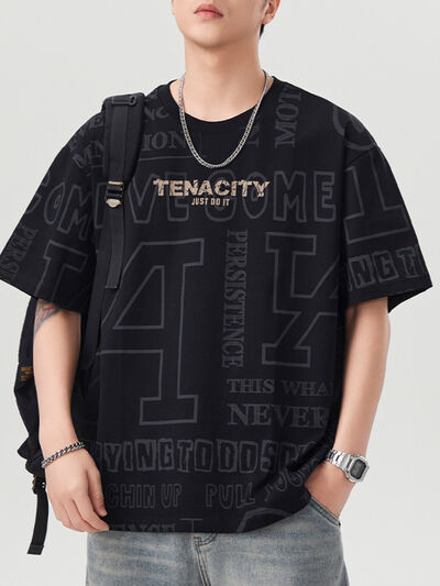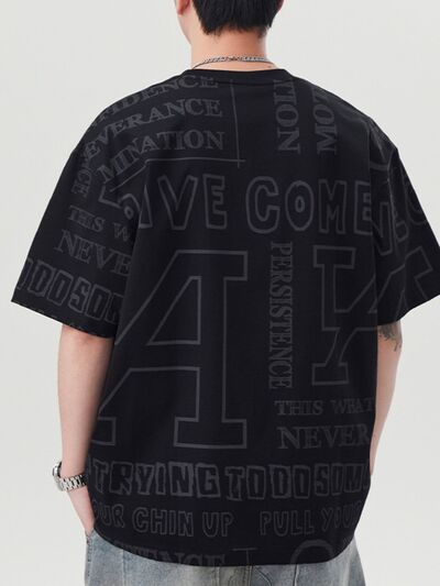 Men's Plus Size Letter Round Neck Short Sleeve T-Shirt