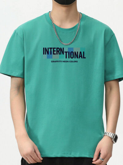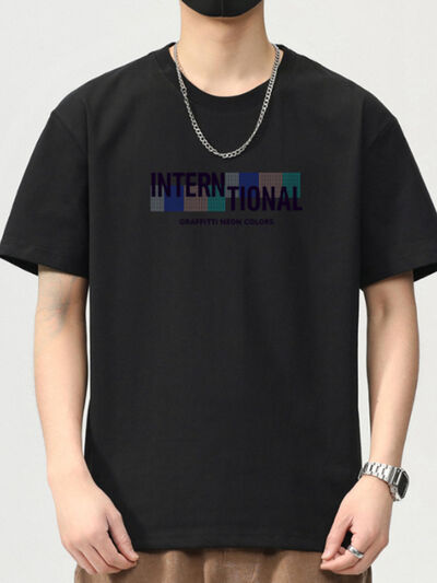 Men's Plus Size Letter Round Neck Short Sleeve T-Shirt