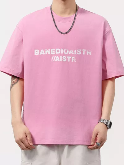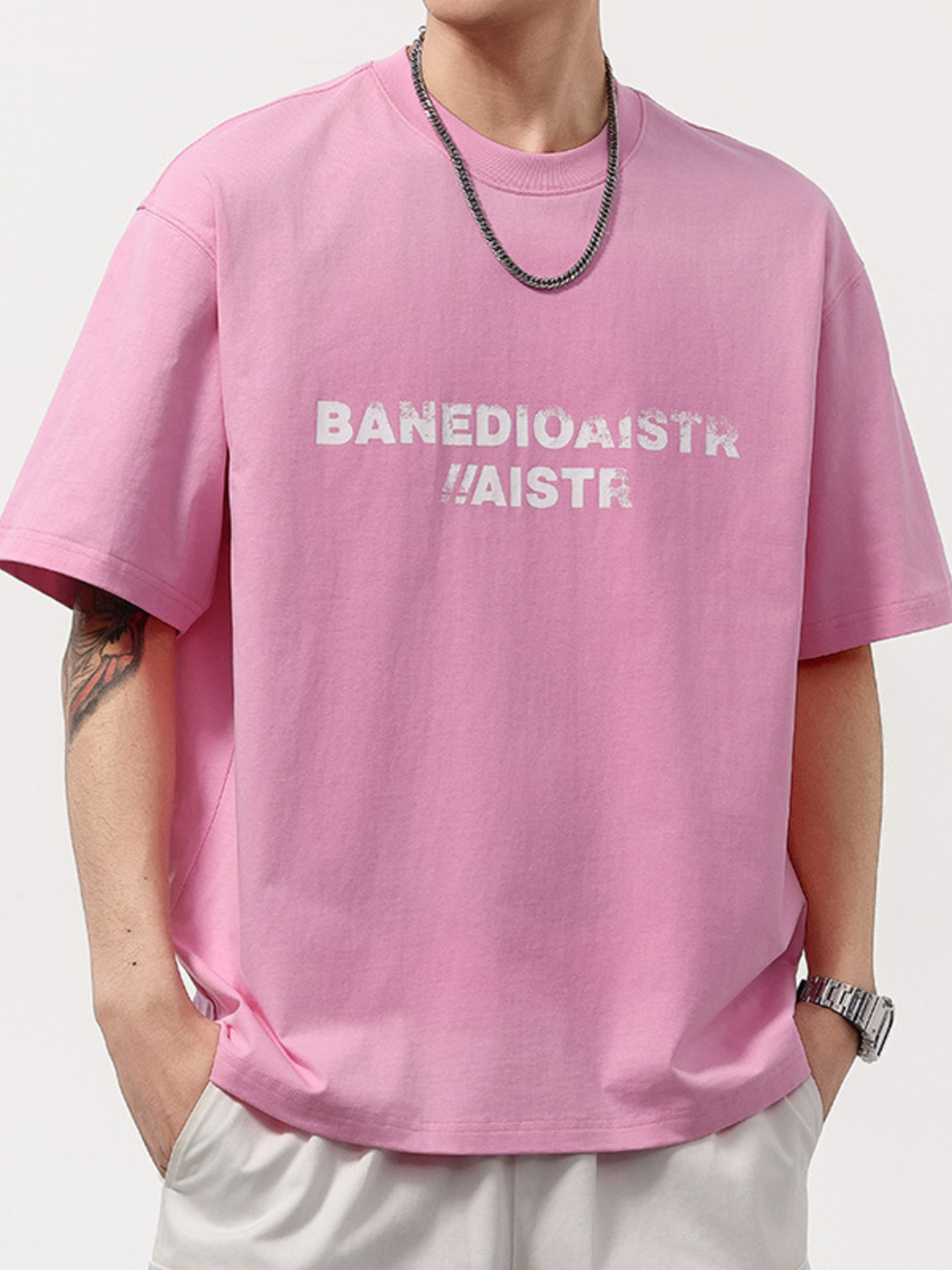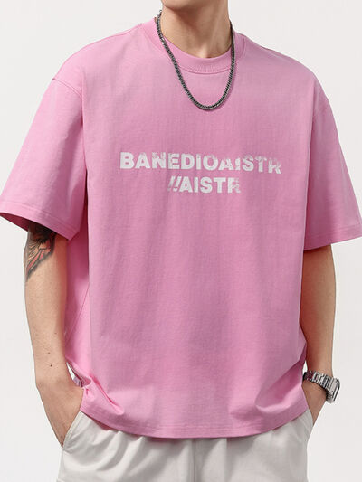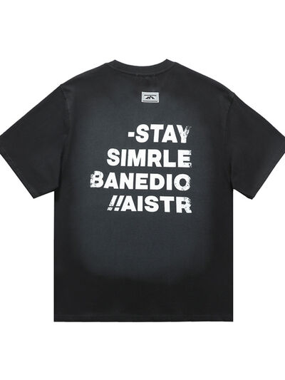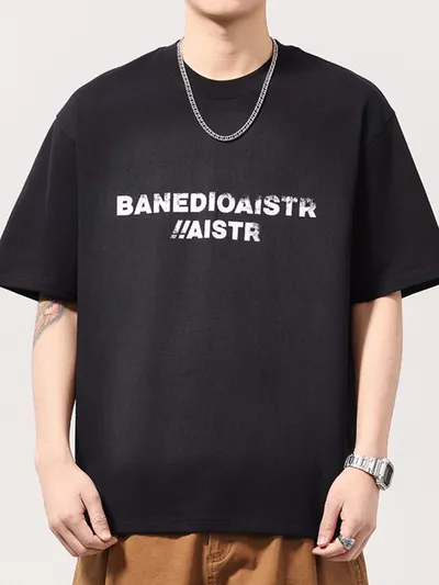 Men's Plus Size Letter Round Neck Short Sleeve T-Shirt