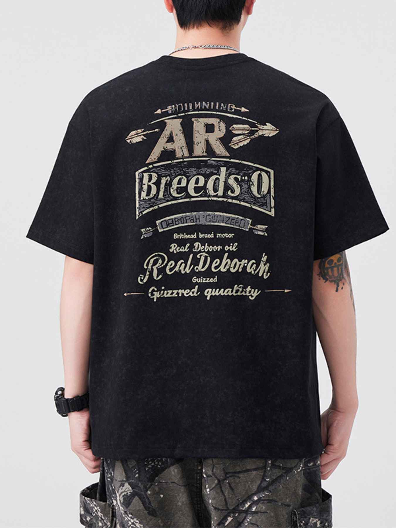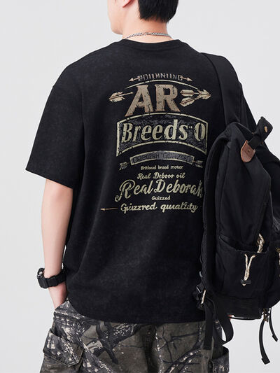 Men's Plus Size Letter Round Neck Short Sleeve T-Shirt