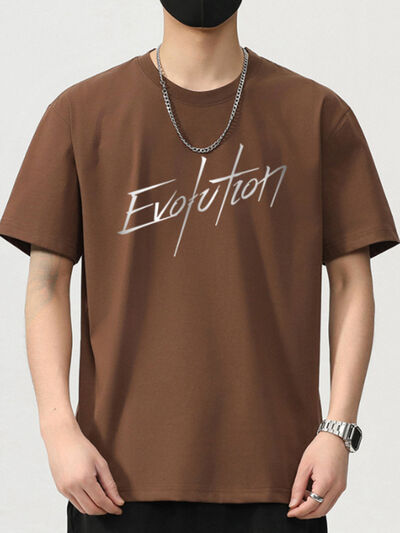 Men's Plus Size Letter Round Neck Short Sleeve T-Shirt