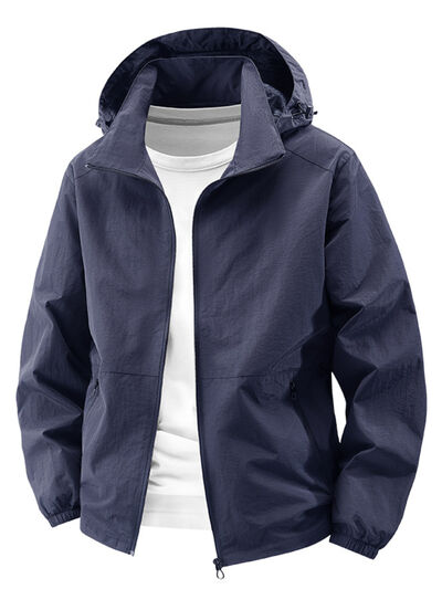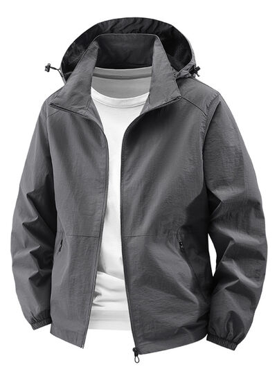 Men's Plus Size Lightweight Hooded Windbreaker Jacket