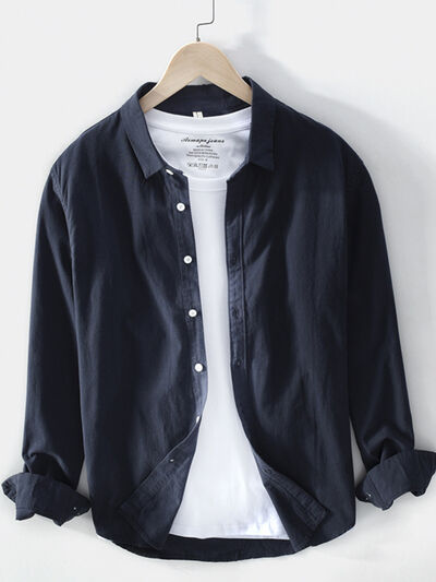 Men's Plus Size Long Sleeve Button-Up Shirt