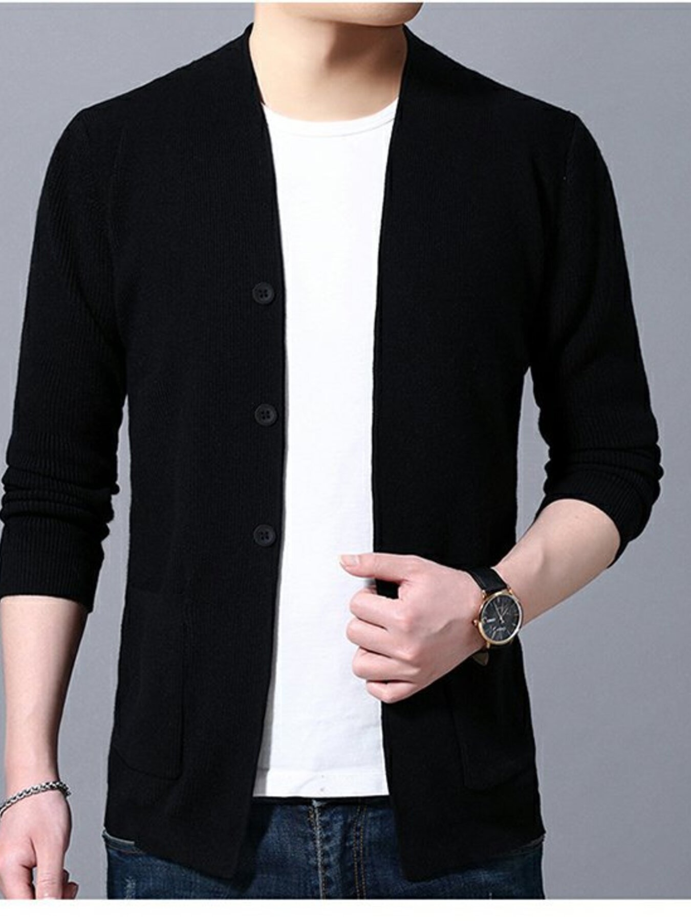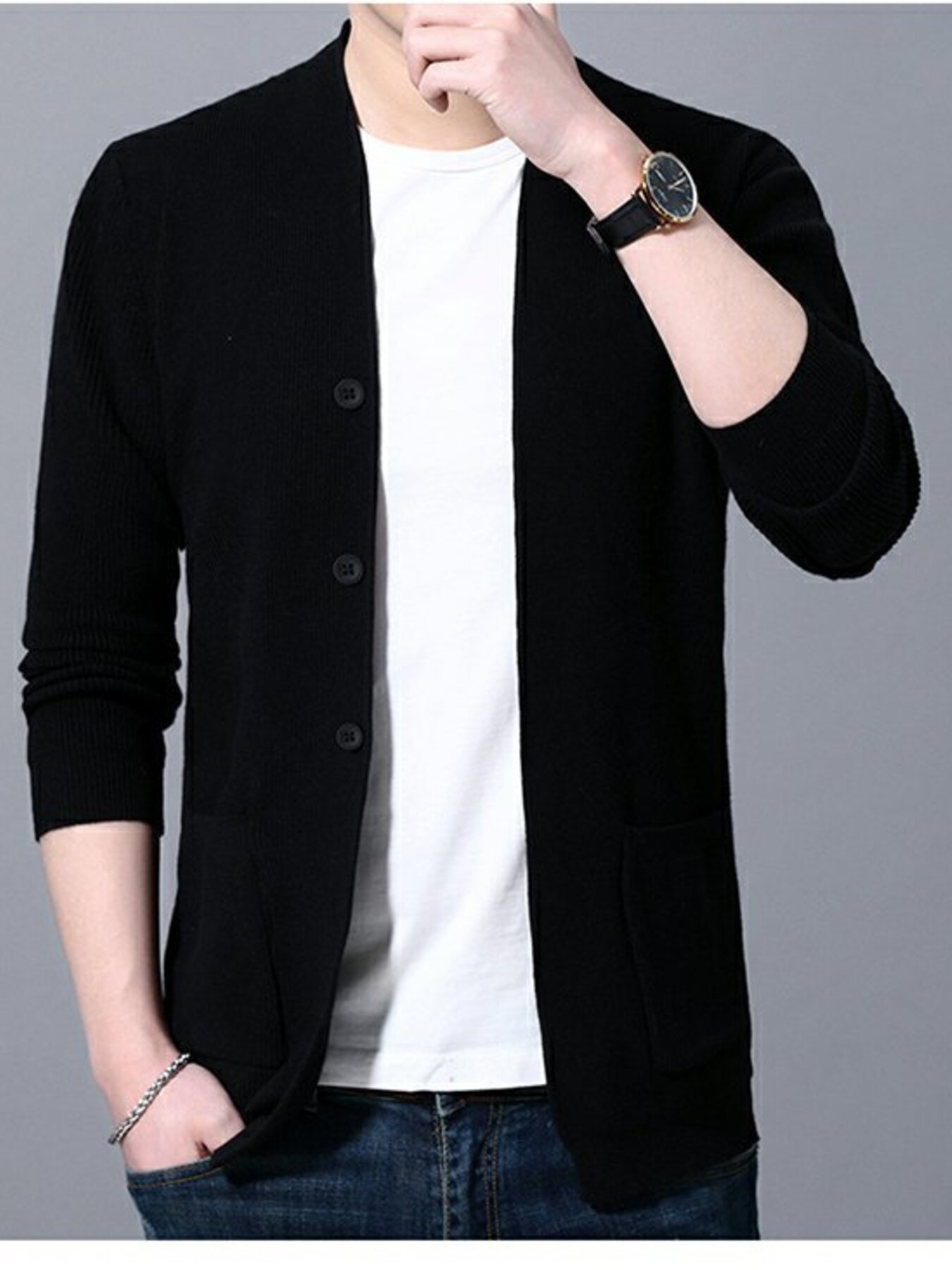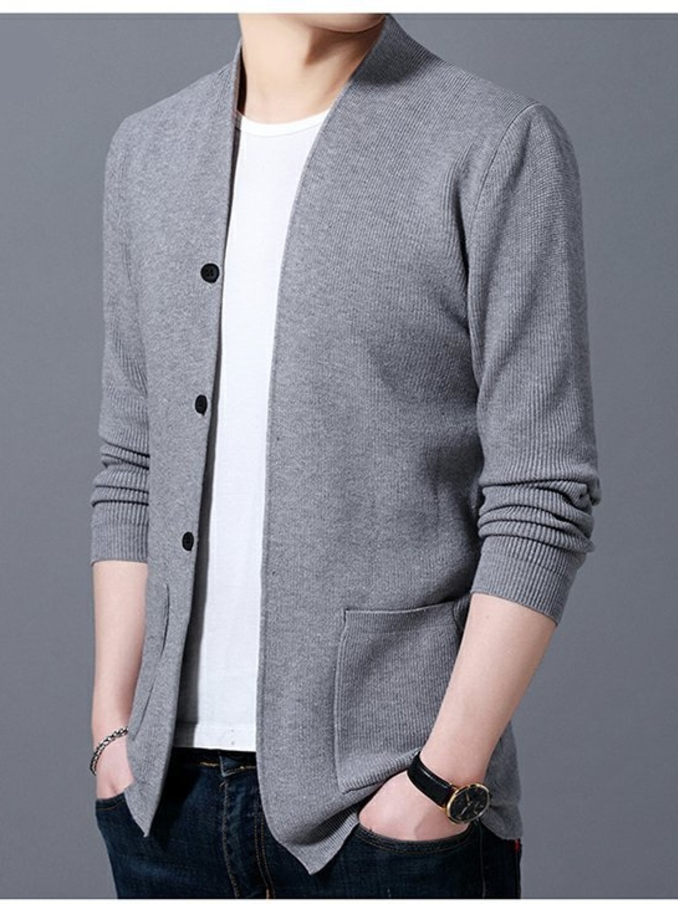 Men's Plus Size Long Sleeve Cardigan with Pockets