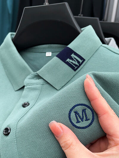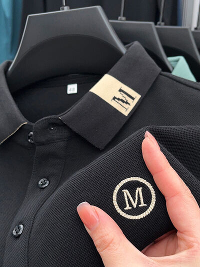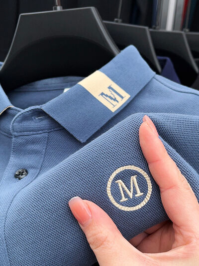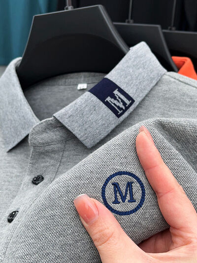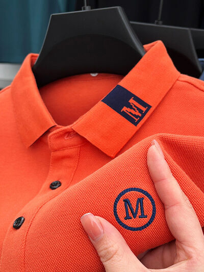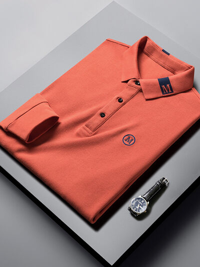 Men's Plus Size Long Sleeve Embroidered Polo