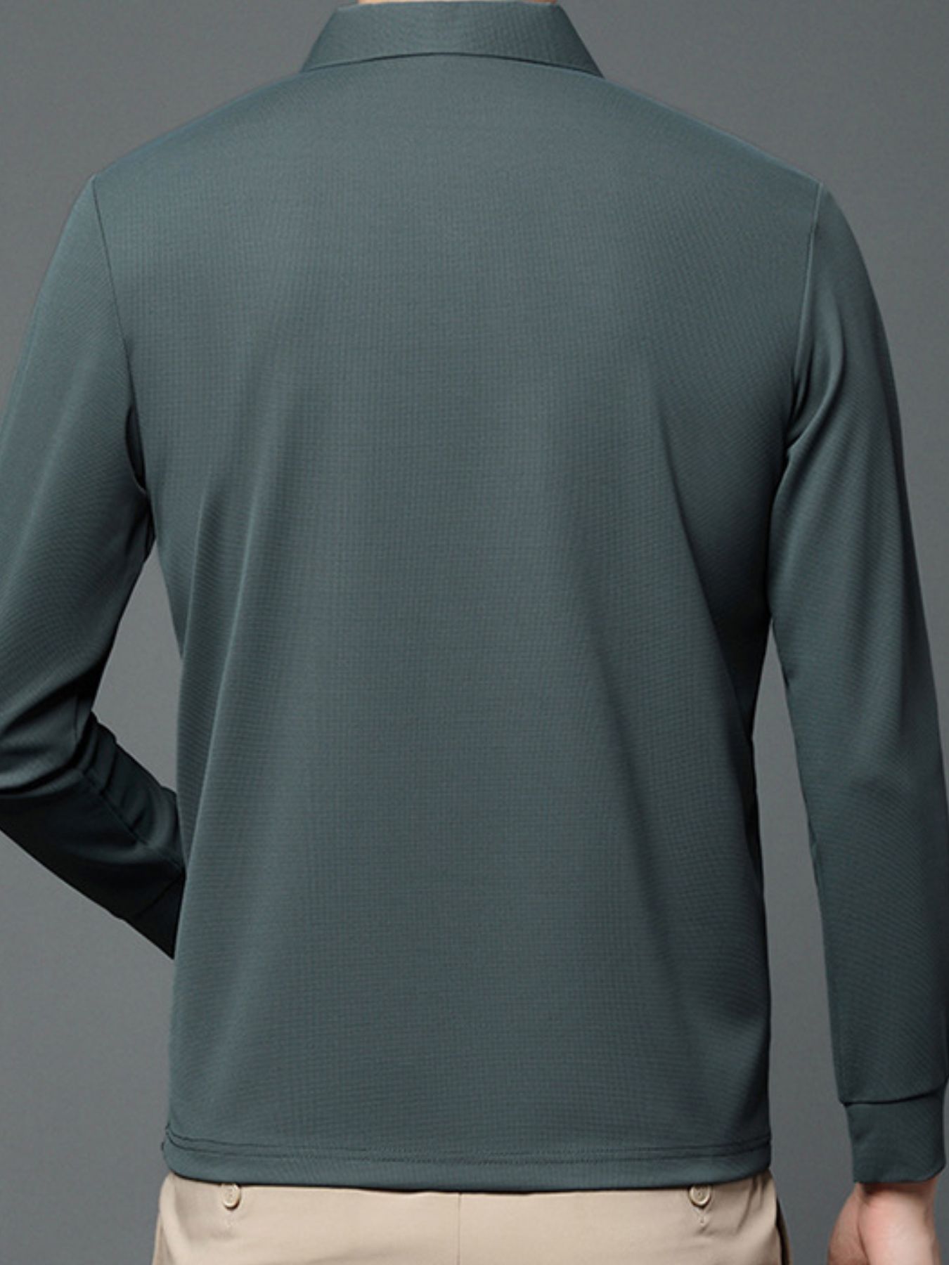 Men's Plus Size Long Sleeve Polo with Classic Collar