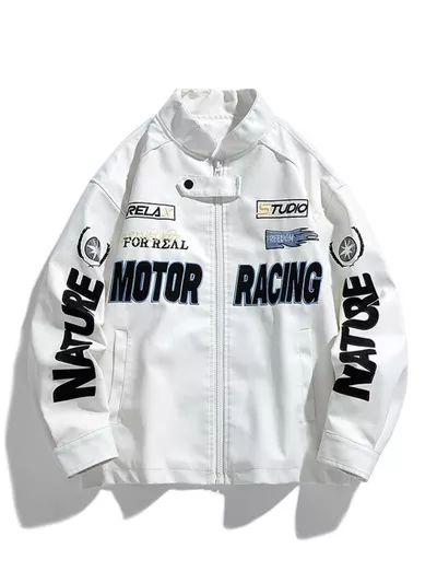 Men's Plus Size Motor Racing Leather Jacket