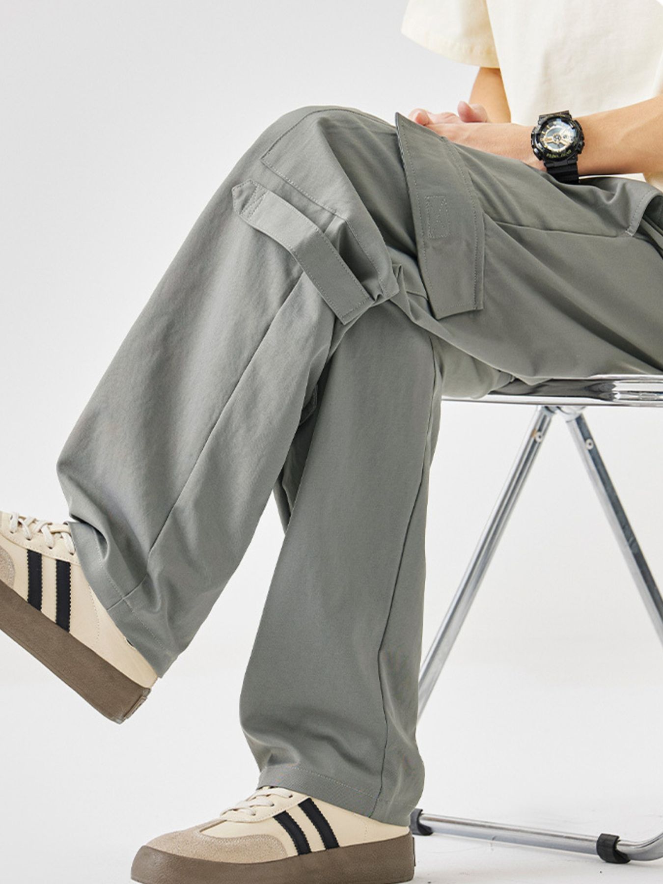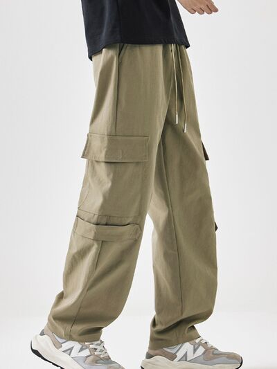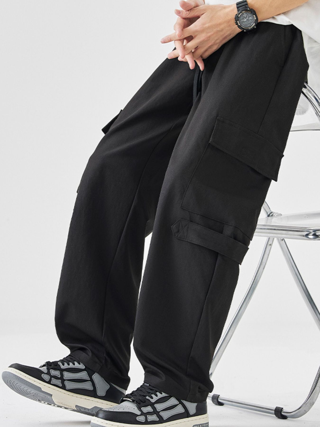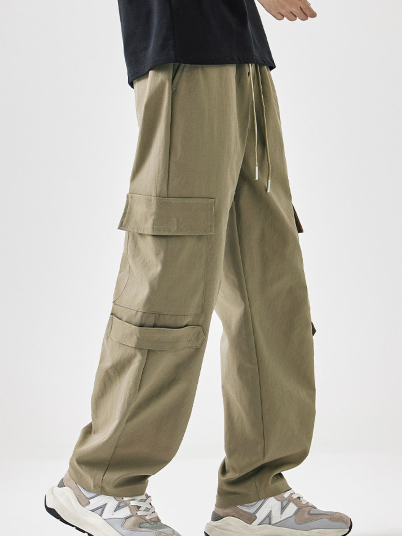 Men's Plus Size Multi-Pocket Cargo Utility Pants with Drawstring Waist