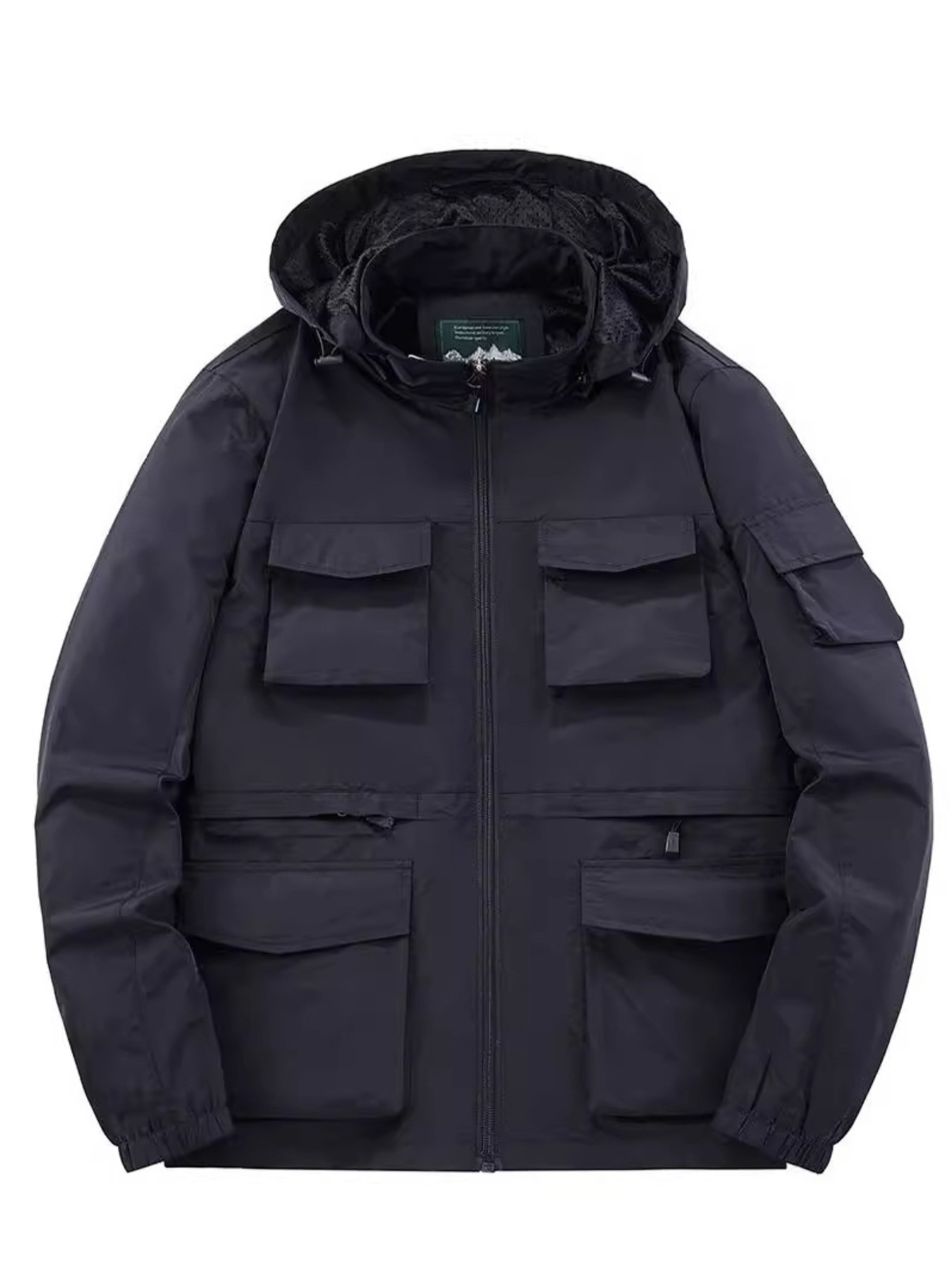 Men's Plus Size Multi-Pocket Hooded Outdoor Jacket