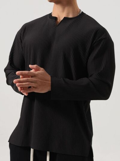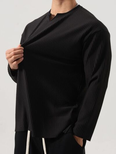 Men's Plus Size Notched Long Sleeve Top