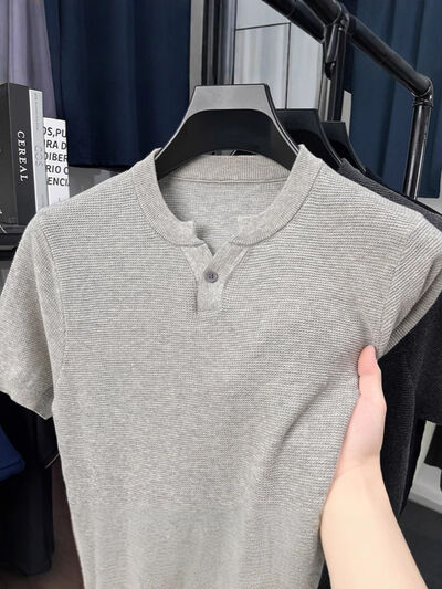 Men's Plus Size Notched Short Sleeve T-Shirt