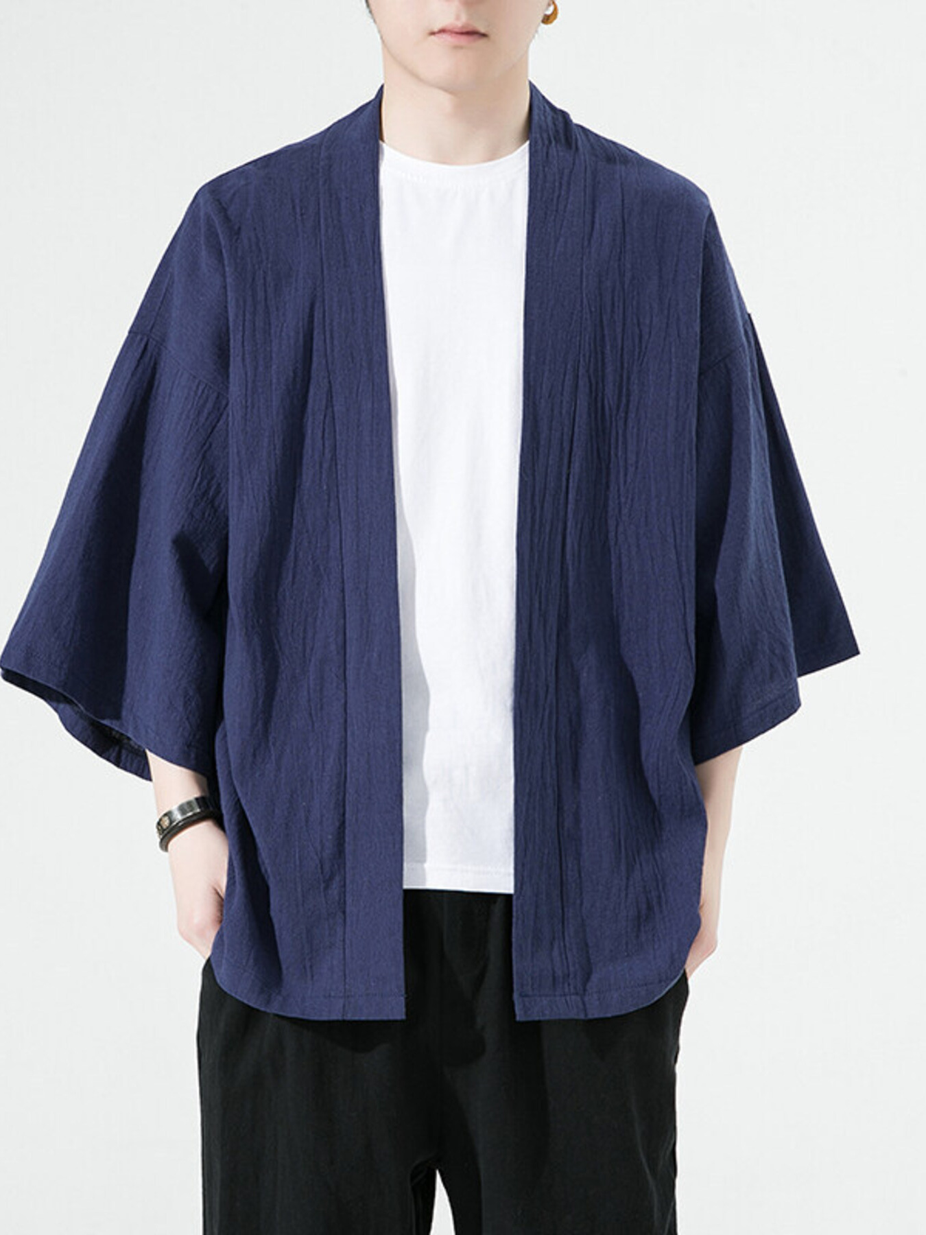 Men's Plus Size Open Front 3/4 Sleeve Cover Up