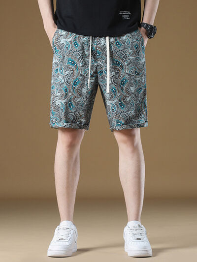 Men's Plus Size Paisley Print Drawstring Beach Shorts