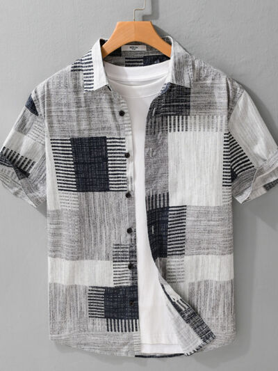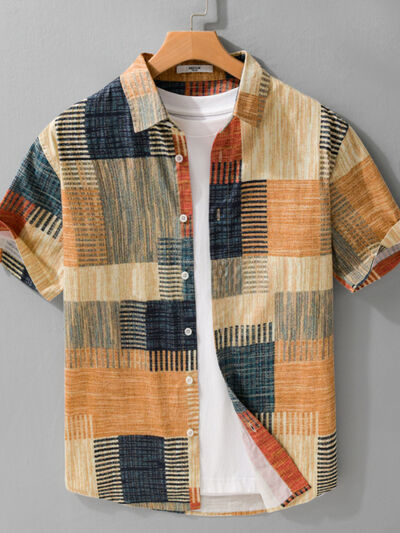 Men's Plus Size Patchwork Print Short Sleeve Shirt