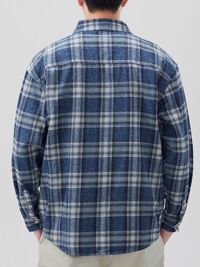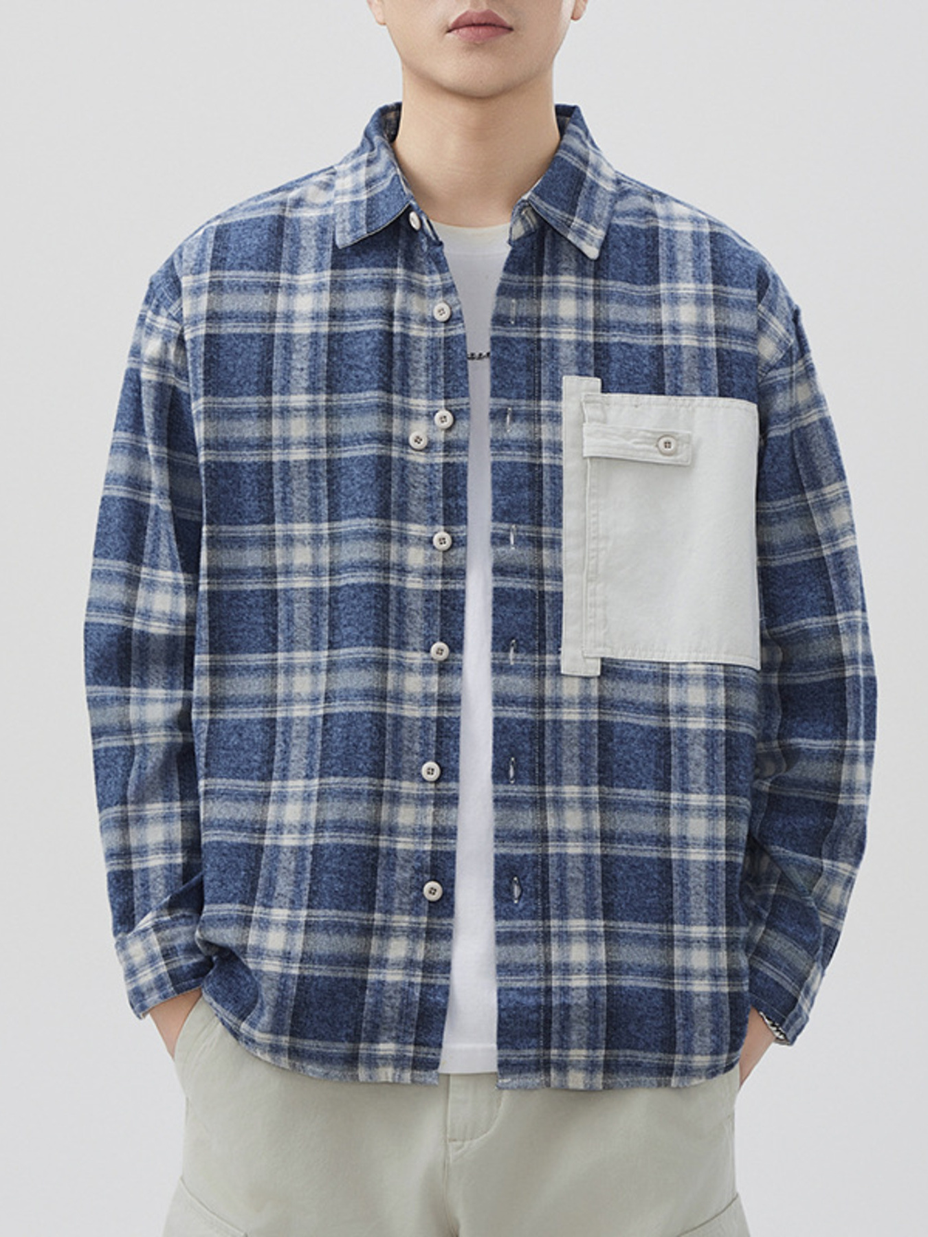 Men's Plus Size Plaid Button Down Shirt with Contrast Pocket