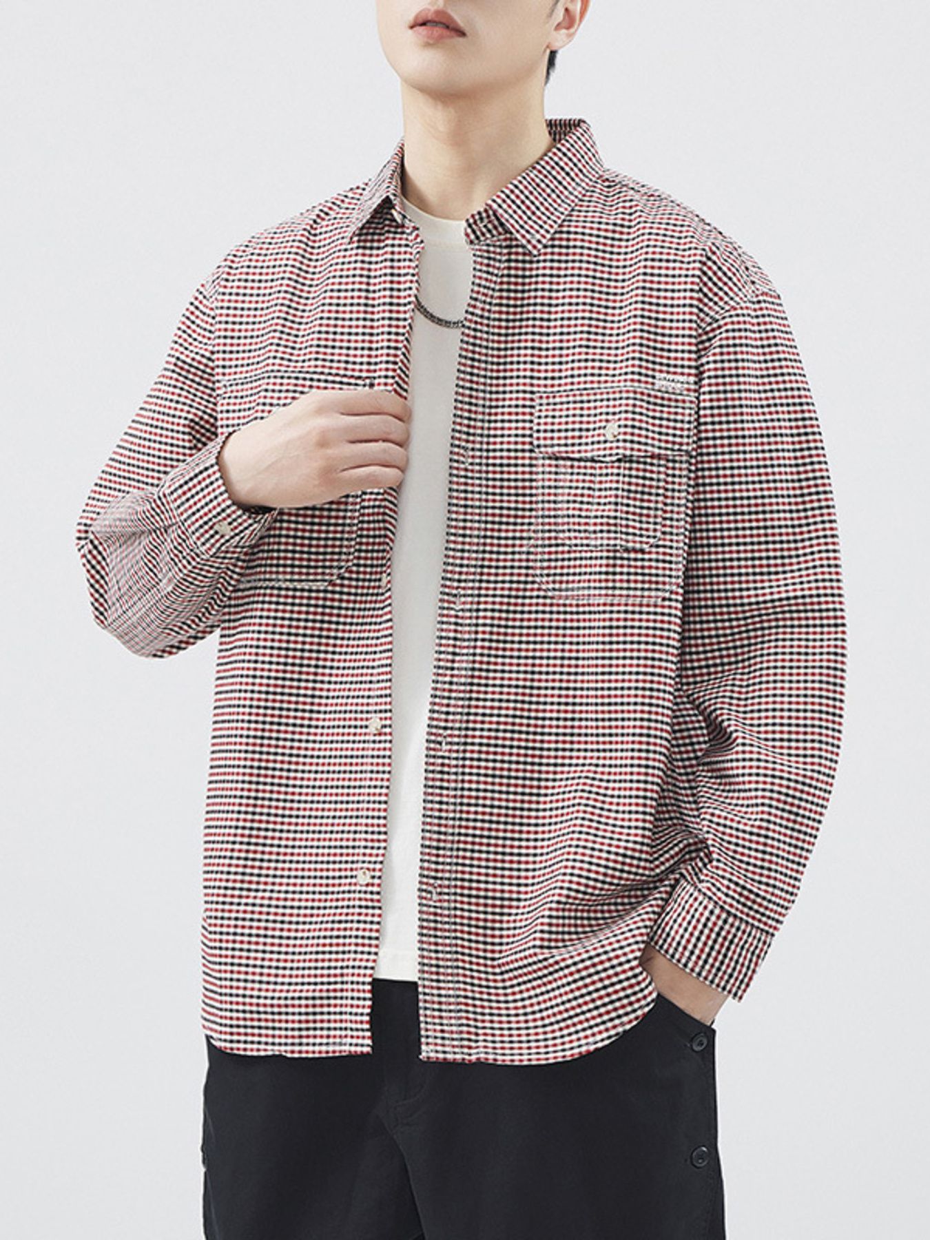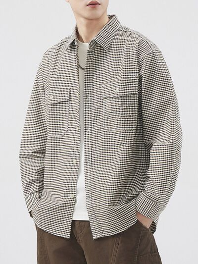 Men's Plus Size Plaid Button Up Long Sleeve Shirt