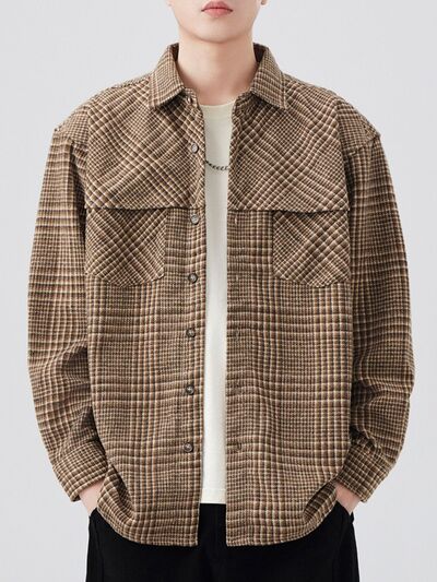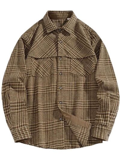 Men's Plus Size Plaid Button Up Long Sleeve Shirt