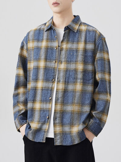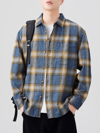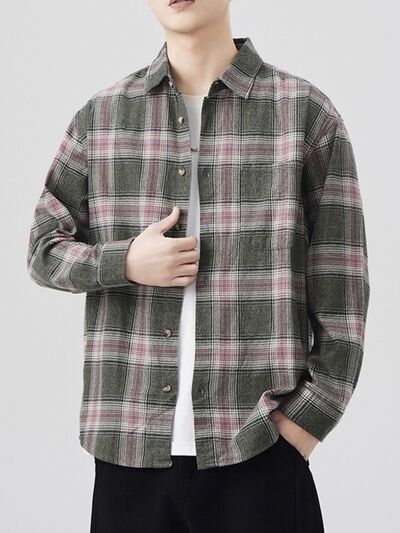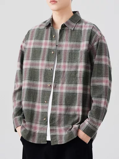 Men's Plus Size Plaid Button Up Long Sleeve Shirt