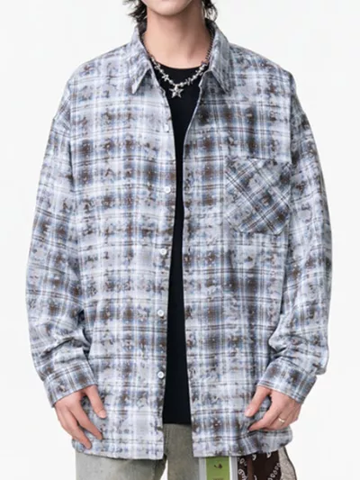 Men's Plus Size Plaid Button Up Long Sleeve Shirt